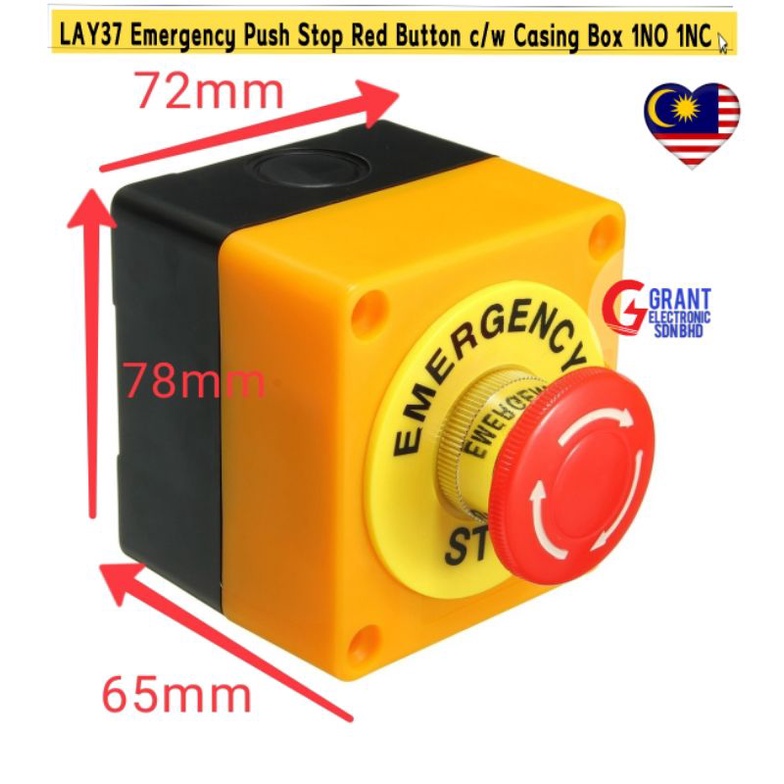 LAY37 Emergency Push Stop Red Button c/w Casing Box 1NO 1NC