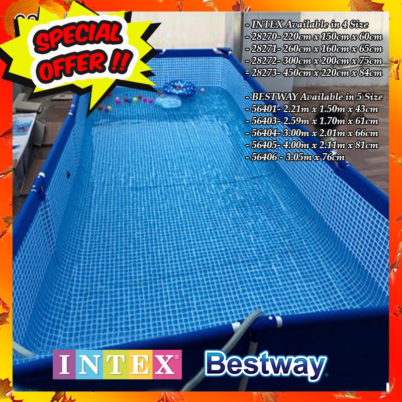 🔥INTEX /BESTWAY Kolam Renang Dewasa / Kolam Ikan / Akuarium Bingkai Keluli Large Size Swimming Pool