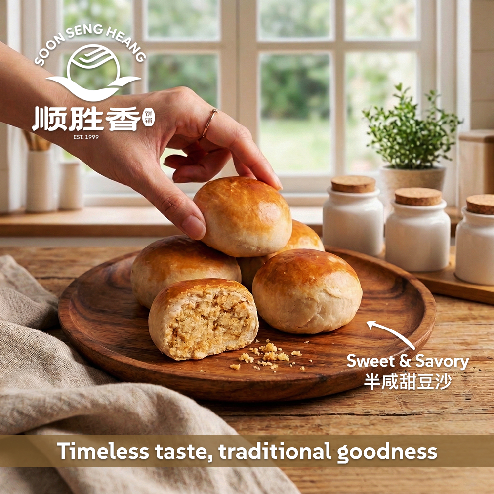 Soon Seng Heang Penang Tau Sar Piah Mung Bean Sweet Salty | 顺胜香 槟城特产 豆沙饼 半咸甜味 (150g 5pcs)