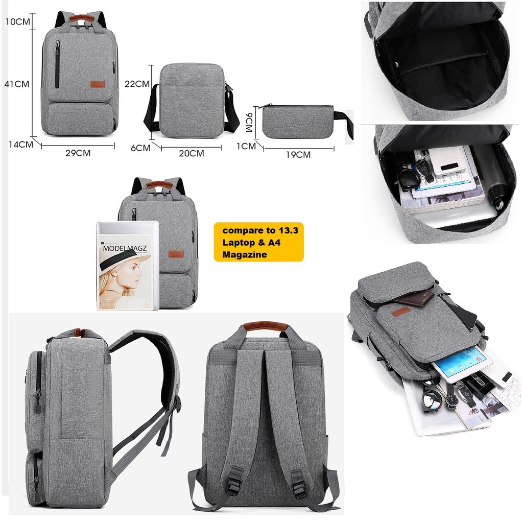 Bex Men 9087 3 In 1 Notebook Backpack Sling Wallet Pocket School Korea Fashion Durable Big Storage Water spill Proof