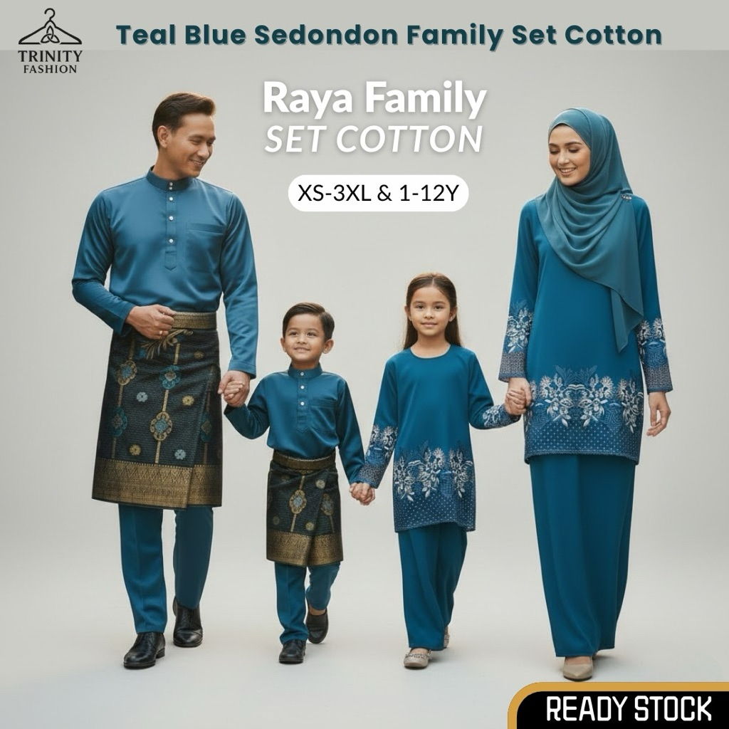 Baju Raya 2026 Teal Blue Family Set | Elegant Sedondon Look | Set Ayah Ibu Anak | S-3XL / 1Y-12