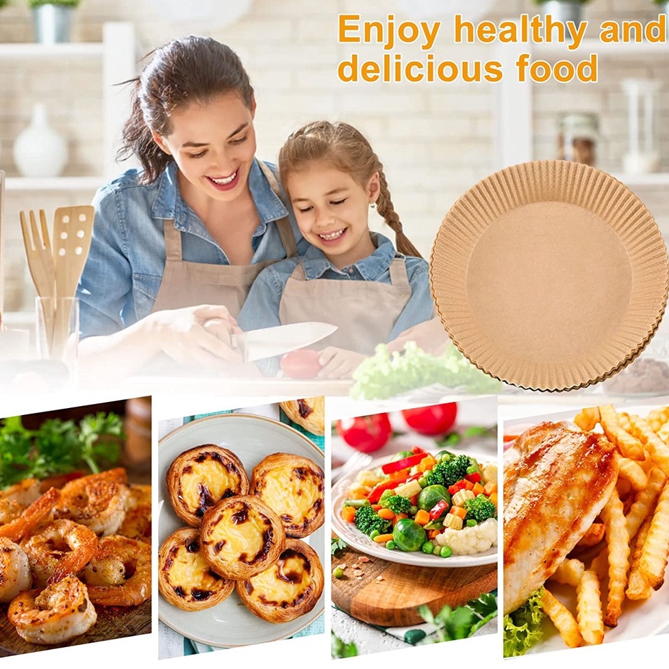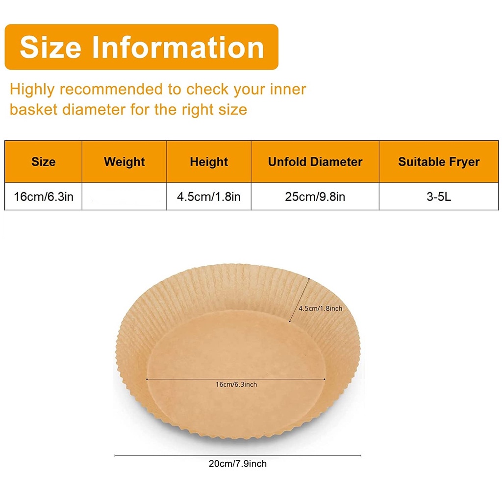 50pcs 20cm Air Fryer paper(with box) Baking Papers Non-Stick Steamer Round Parchment Paper Liners