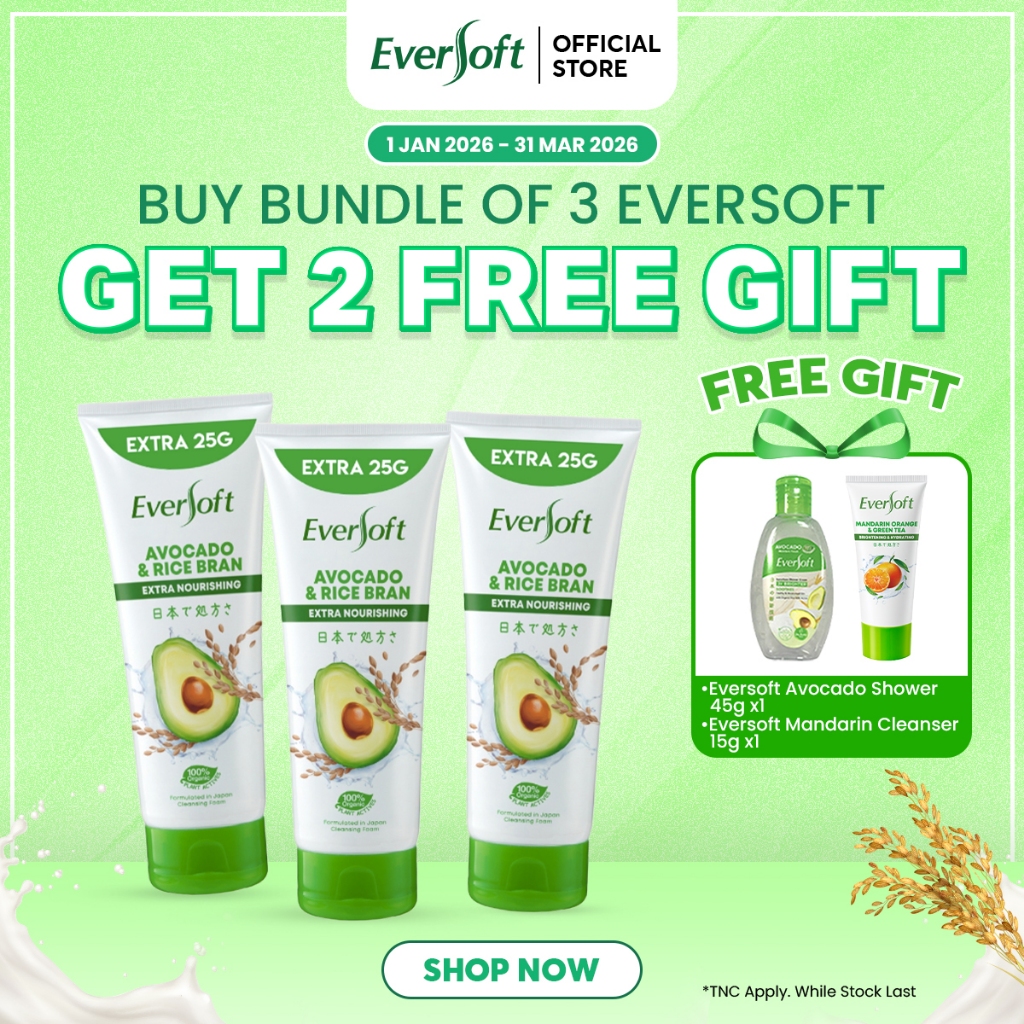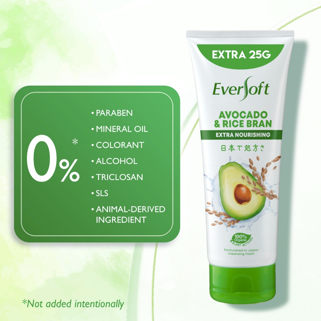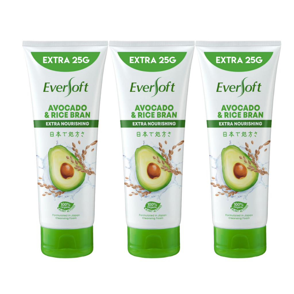 [Bundle of 3] Eversoft Avocado Cleanser Foam 195g | Skincare | Organic Plant Actives | Cream | Vitamin E | Softens Skin