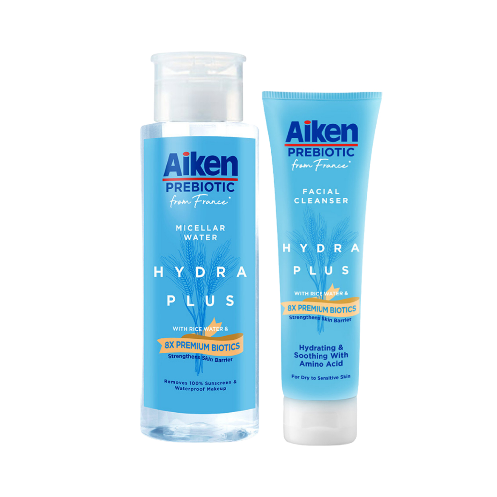 Aiken Prebiotic Hydra Micellar Water 300ml + Prebiotic Hydra Plus Facial Cleanser 120g | Moisture Balance | Creamy Foam