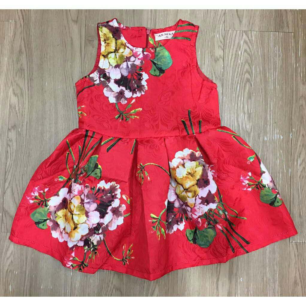 Girl Cotton Fashion Flower Red/Green/ Lemon Dress