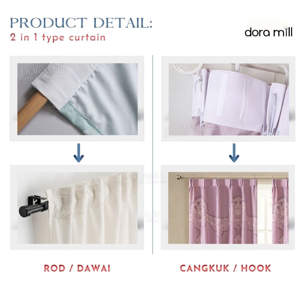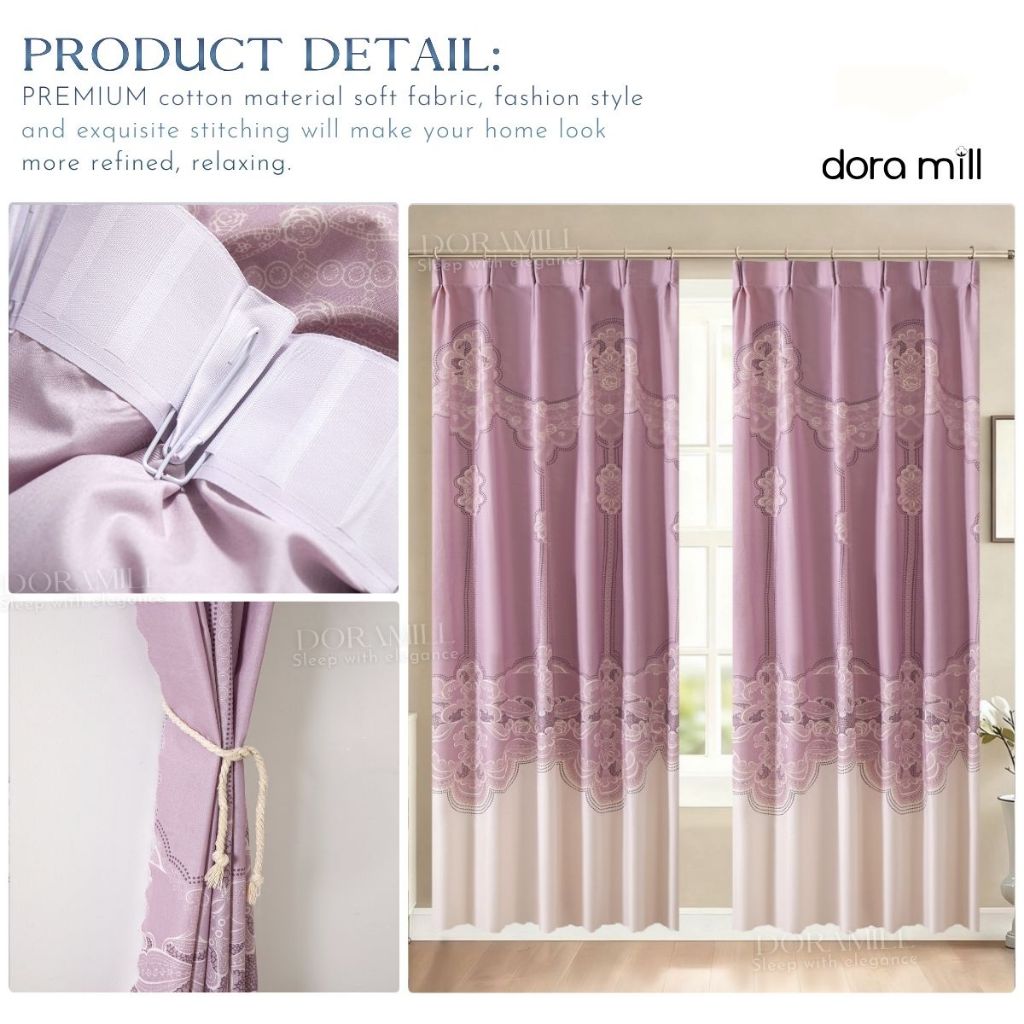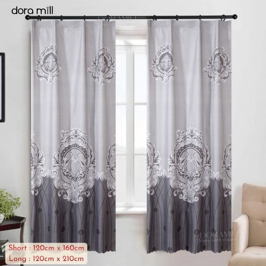 DORAMILL Modern Curtain Semi Blackout Murah Hook Rod Type Ready Stock 2in1 Langsir Murah CANTIK C#2