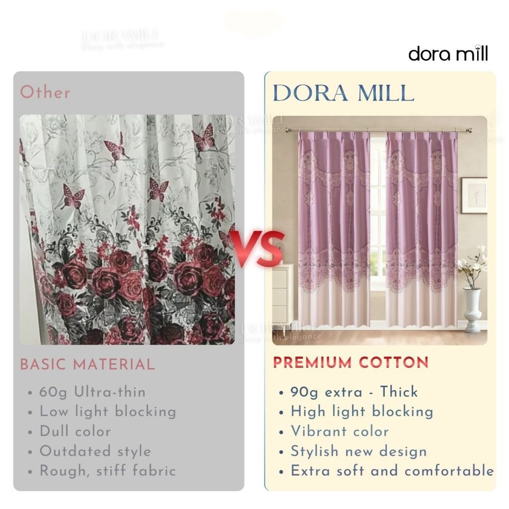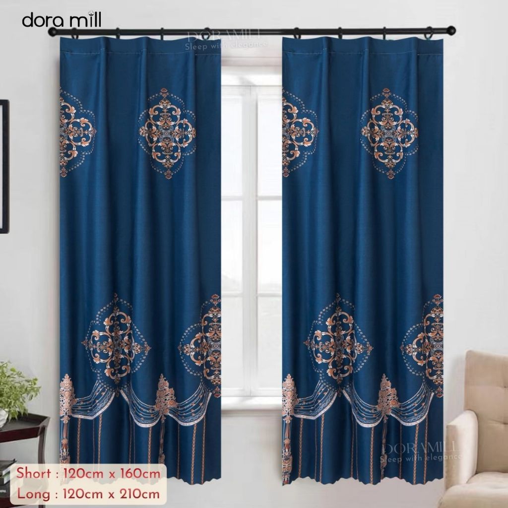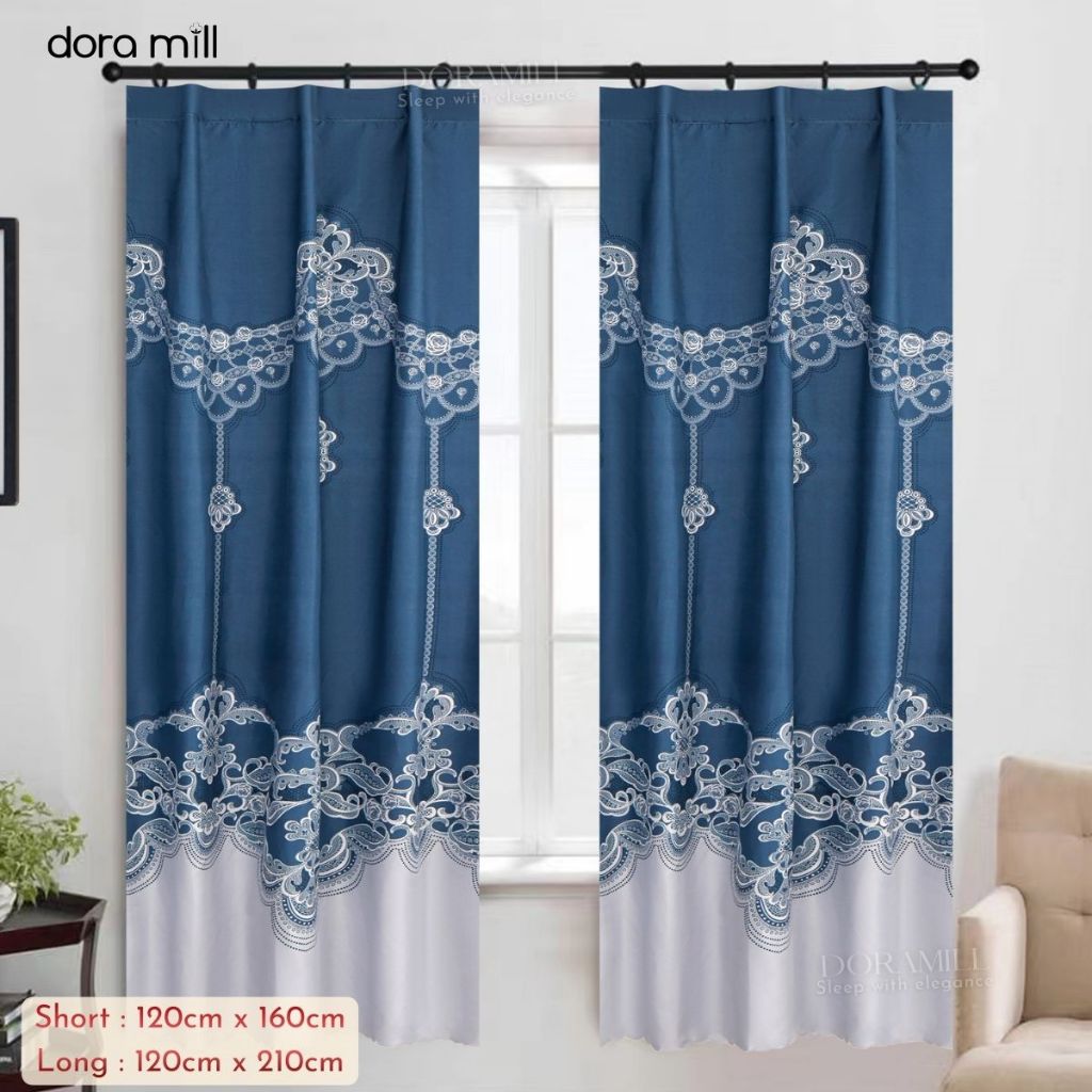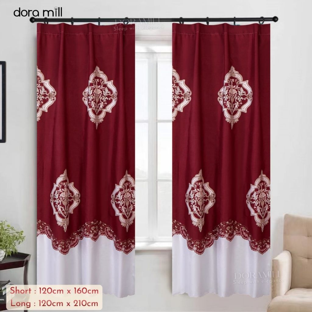 DORAMILL Modern Curtain Semi Blackout Murah Hook Rod Type Ready Stock 2in1 Langsir Murah CANTIK C#2