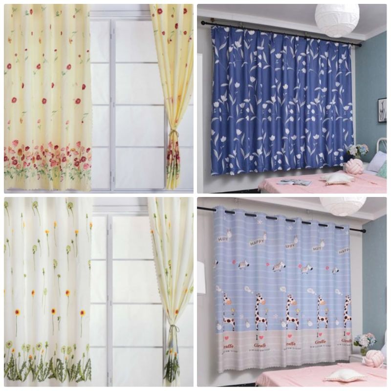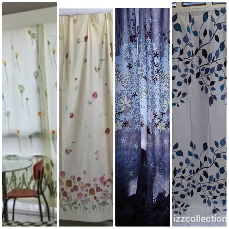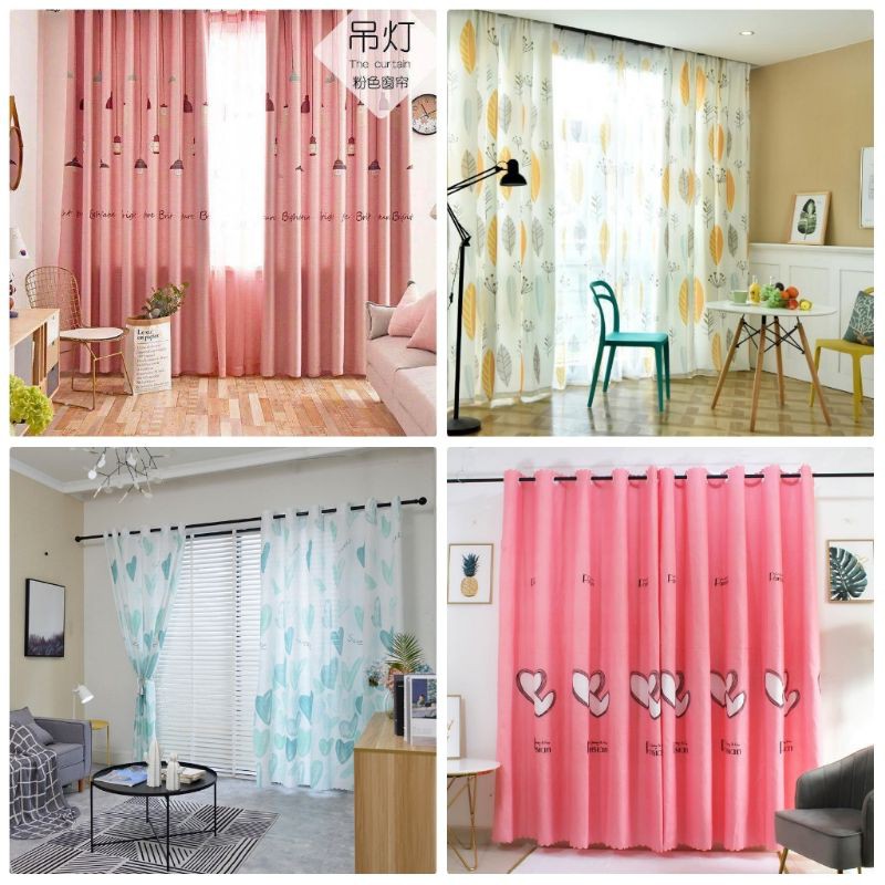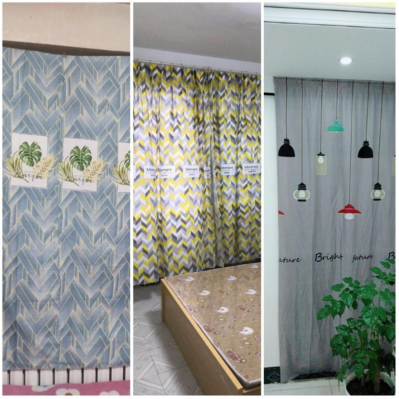 Langsir Tingkap Sliding Door Baget Murah Siap Jahit / Curtain Window Semi Blackout Hook / Rod / Wire (Dawai)
