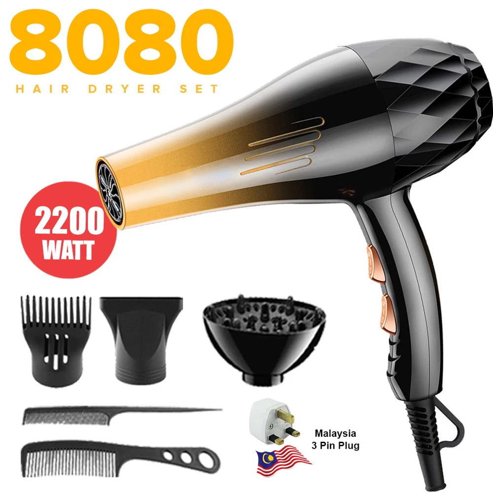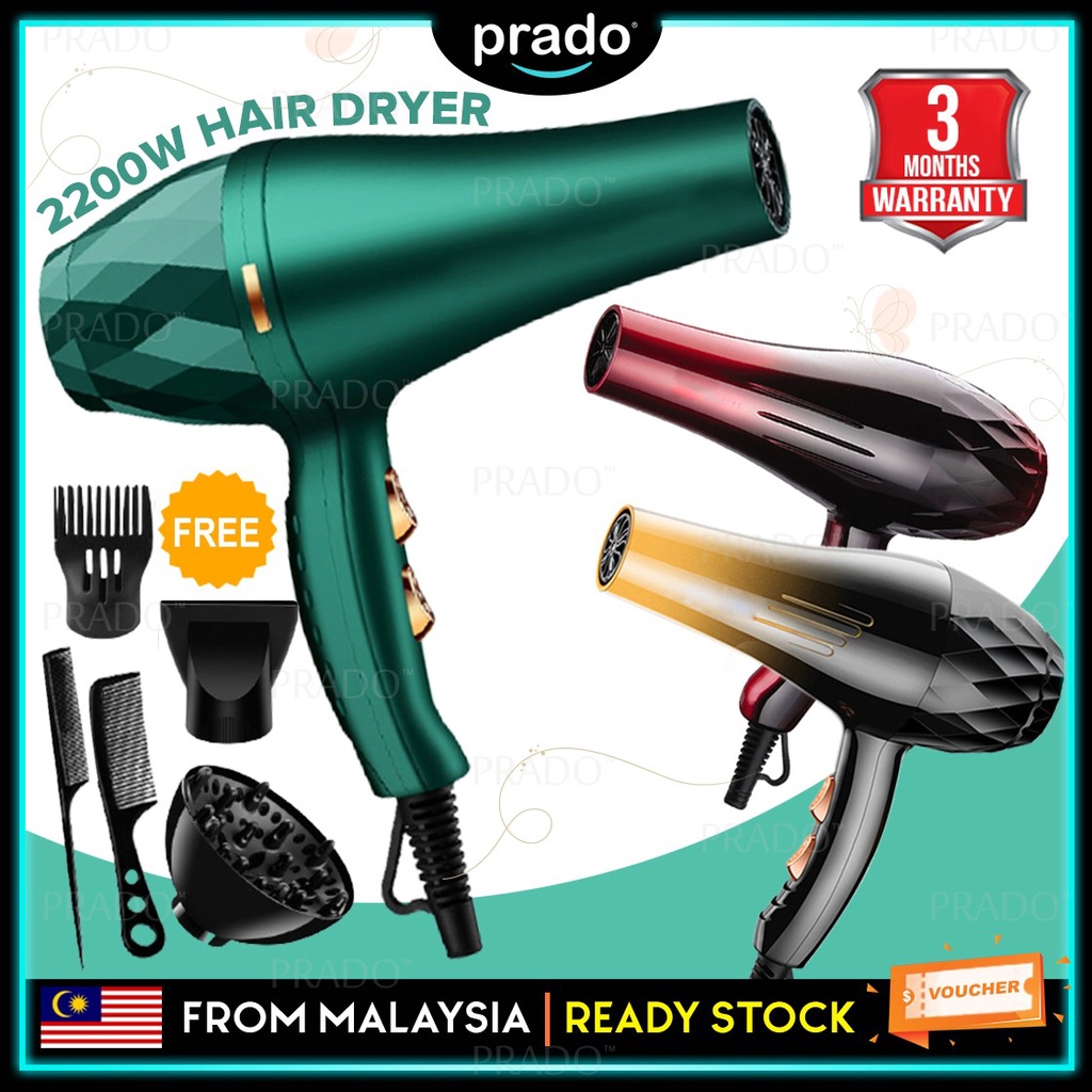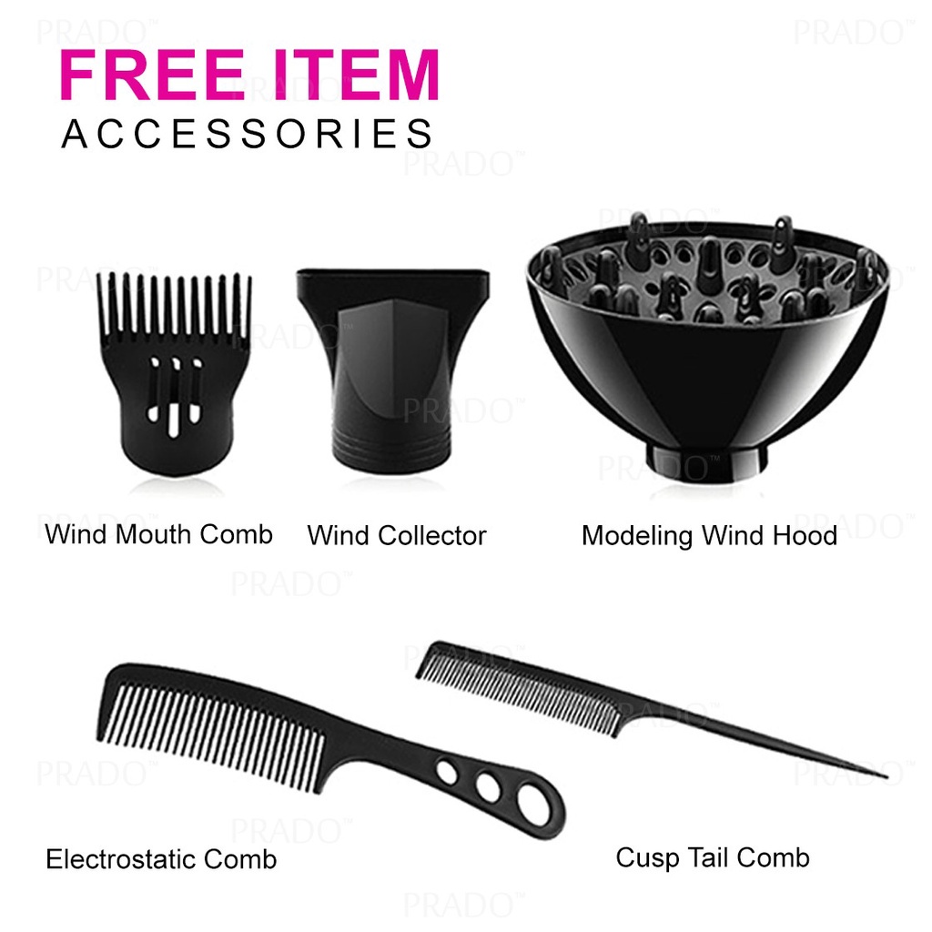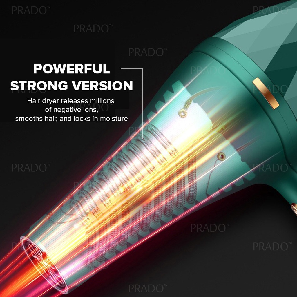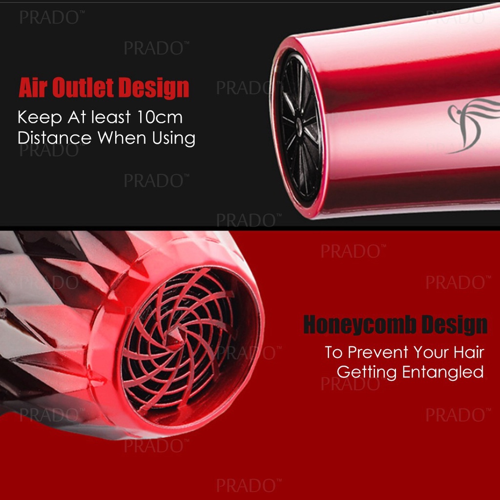 PRADO Portable 2200W Travel Hair Dryer Strong Wind Ionic Senang Dibawa Berkuasa Pengering Rambut dgn Aksesori