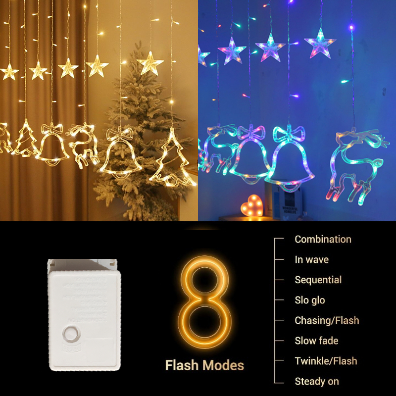 Ramadan Decoration items Merry Christmas Festival Decor Lights Curtain Lights 4x1M Xmas Outdoor Festival Decoration Lights Waterproof Light Festival Icicle Light 8 Modes