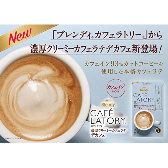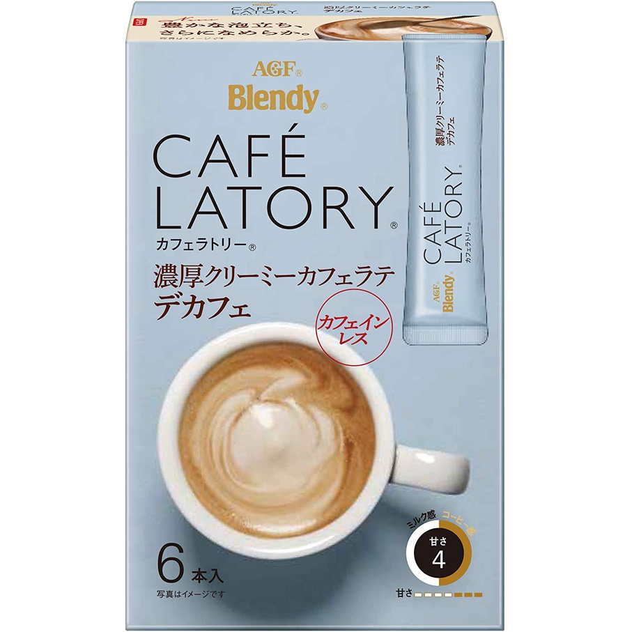 AGF Blendy Cafe LATORY Noko Creamy Cafe Latte DECAF (9.6g x 6's) Japan Instant DECAF Milk Coffee