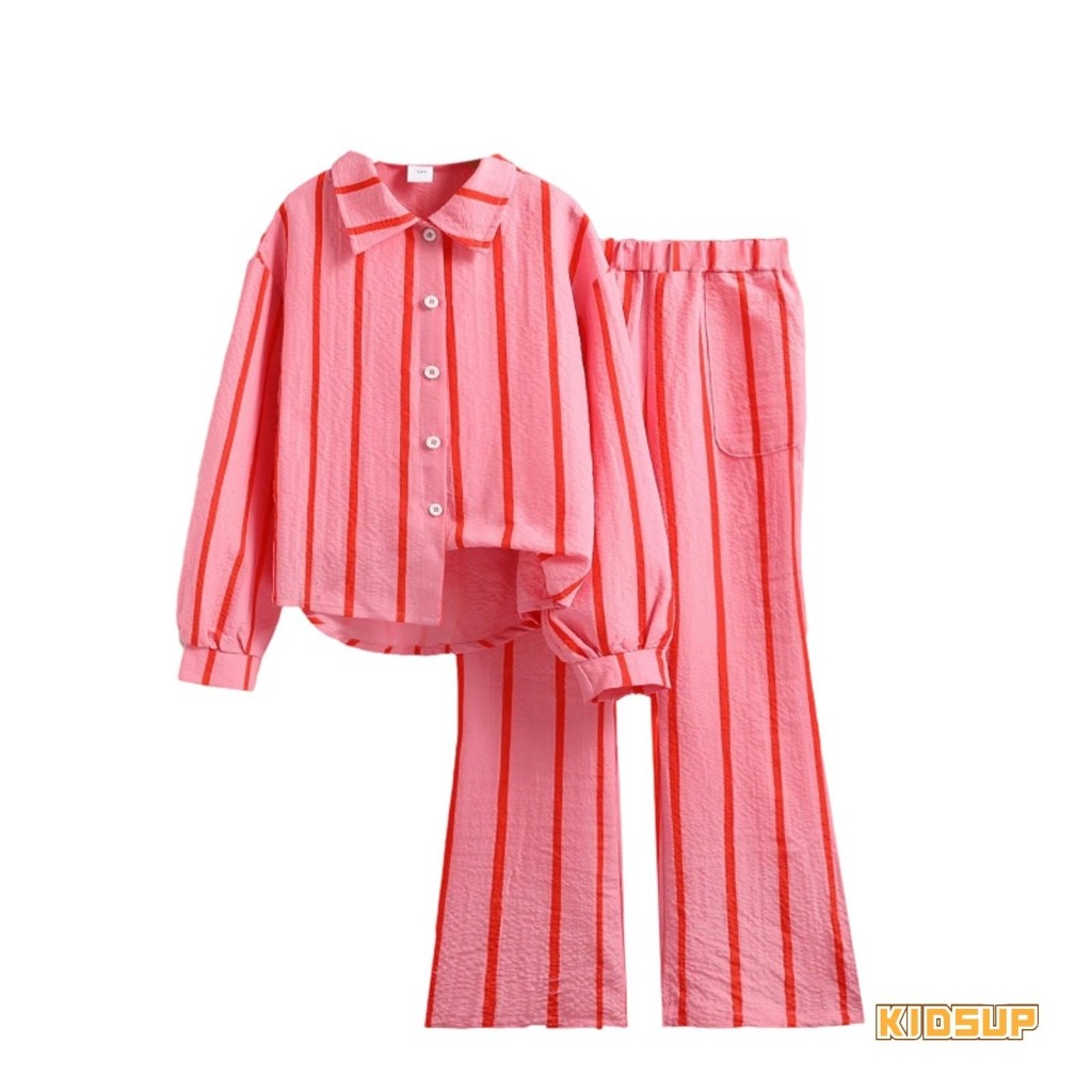 KIDSUP-Tween Girls 2Pcs Fall Outfits Long Sleeve Stripes Print Shirt + Flare Pants Set Kid Clothes