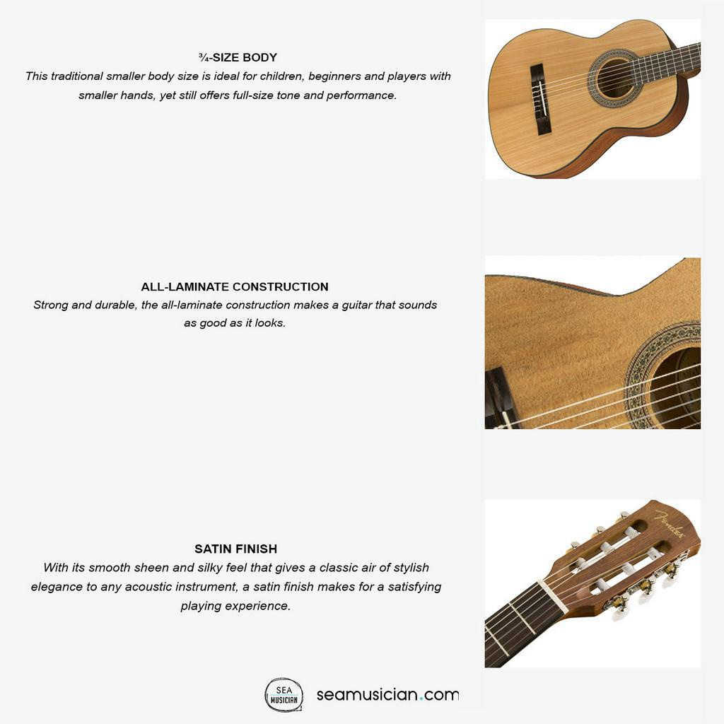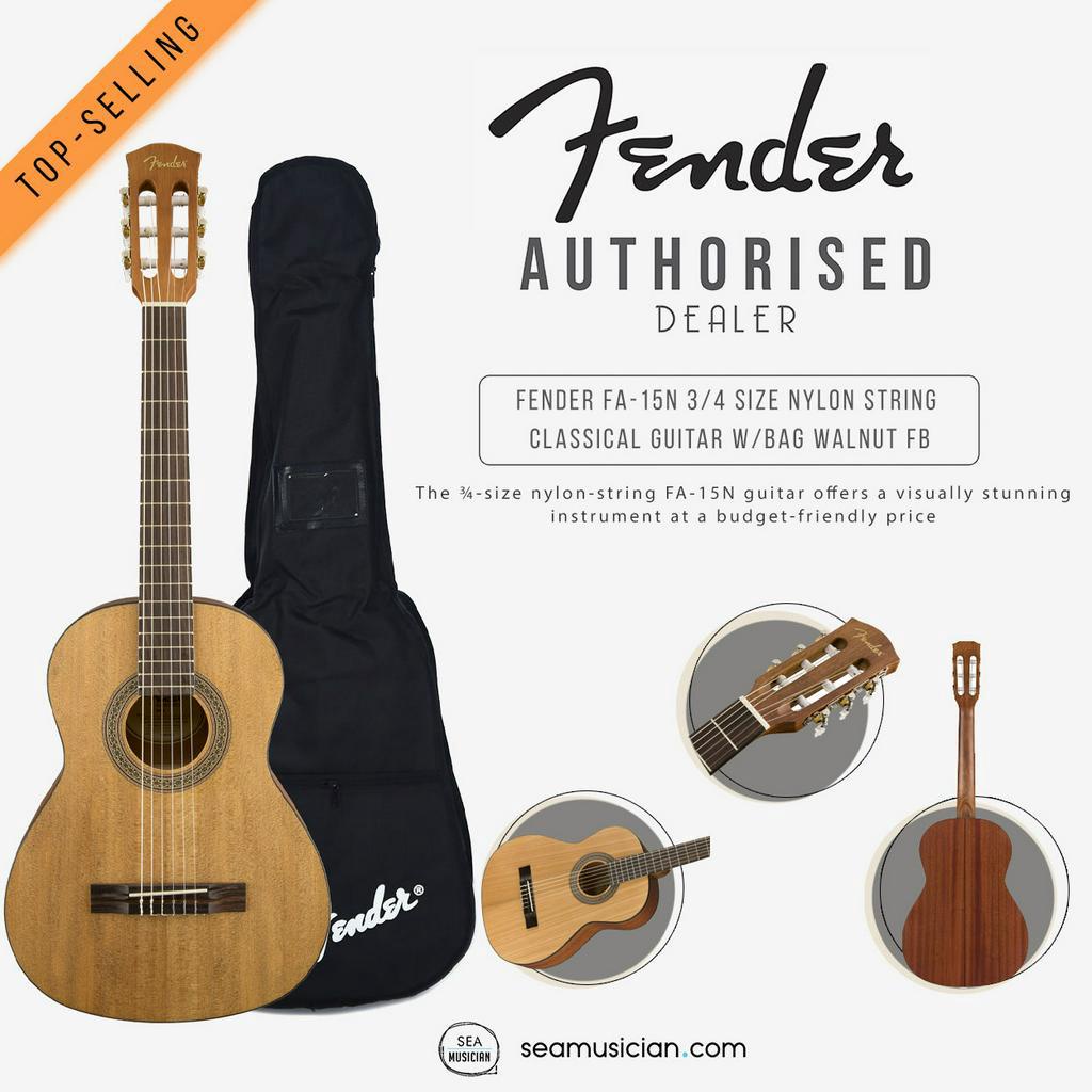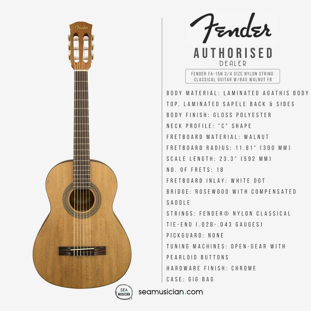 FENDER FA-15N 3/4 SIZE NYLON STRING CLASSICAL GUITAR WALNUT FRETBOARD WITH BAG (FA15N/ FA 15N CLASSICAL GTR/SEAMUSICIAN)
