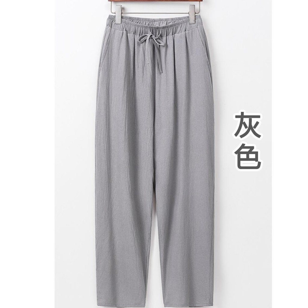 Casual Pants Thin Men's Loose Fitting Straight Leg Pants Chinese Style Elastic Waist Cool Feeling Long Pants