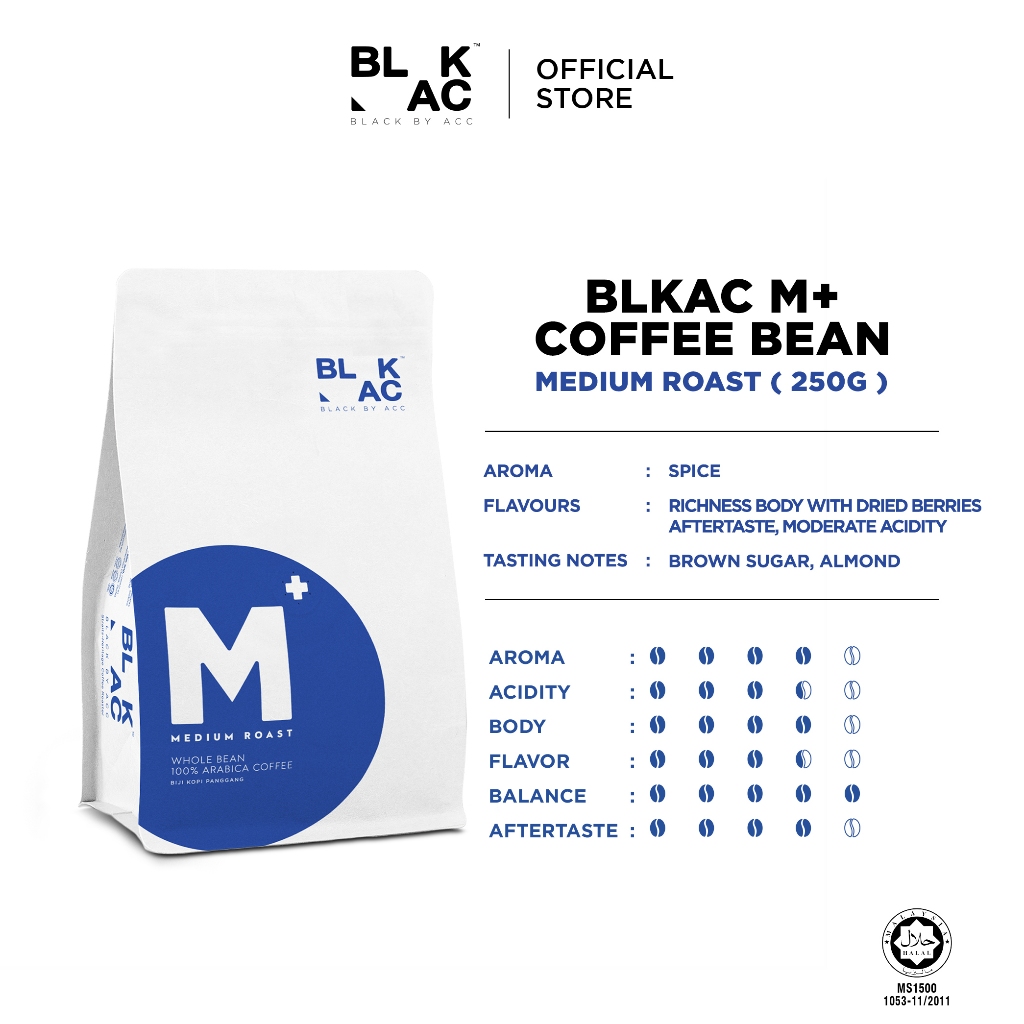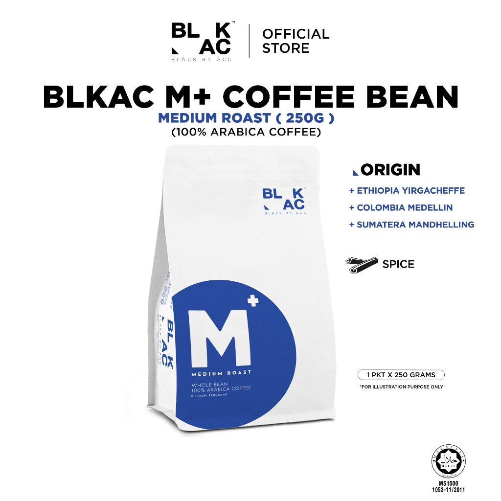 BLKAC M+ Biji Kopi 250g | 100% Arabica Tunggal Asli | Panggang yang Sederhana | Adunan Istimewa | blackbyacc