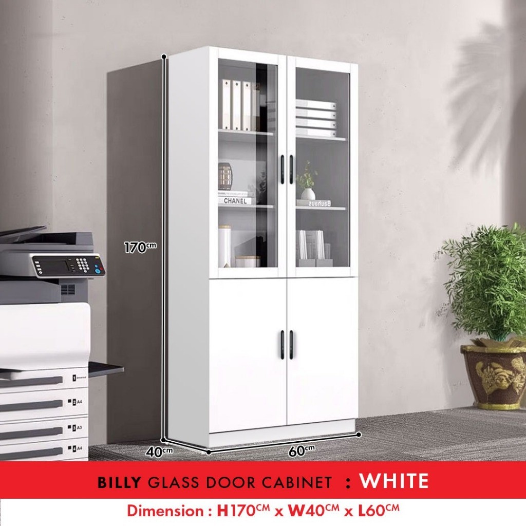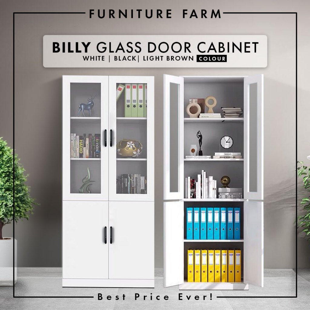 F&F: Billy Glass Cabinet with Door/ Almari Buku Bertutup/ Glass Display Cabinet/ Bookshelf/ Almari Kaca/ Rak Buku