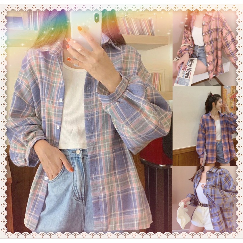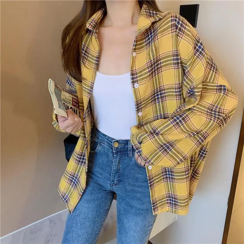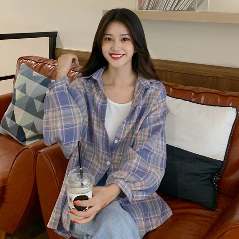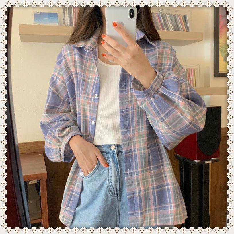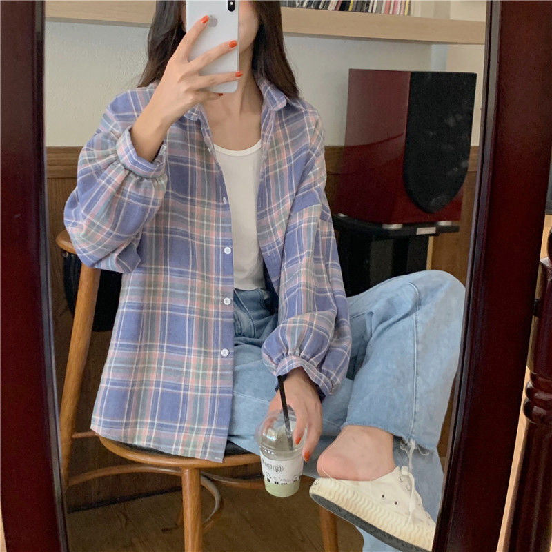 🦄🦄【Cotton】【Ready Stock】Mid-Length Plaid Shirt women 2022 New Women's Clothing Retro Women Shirt Top Tops Design Blouse