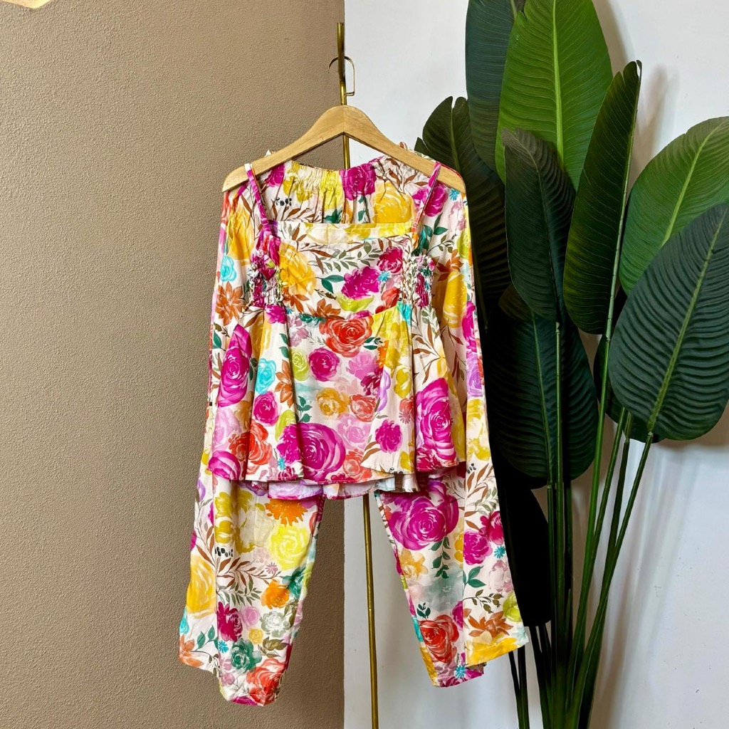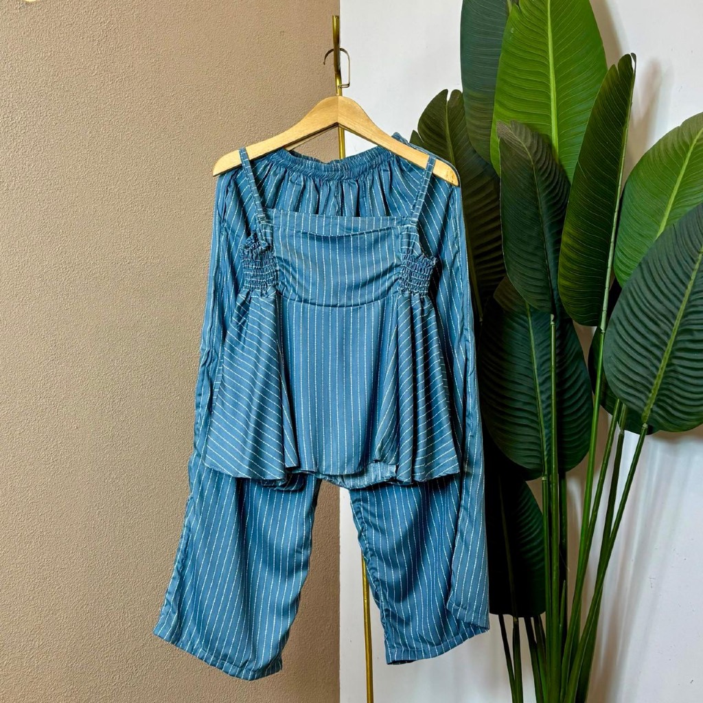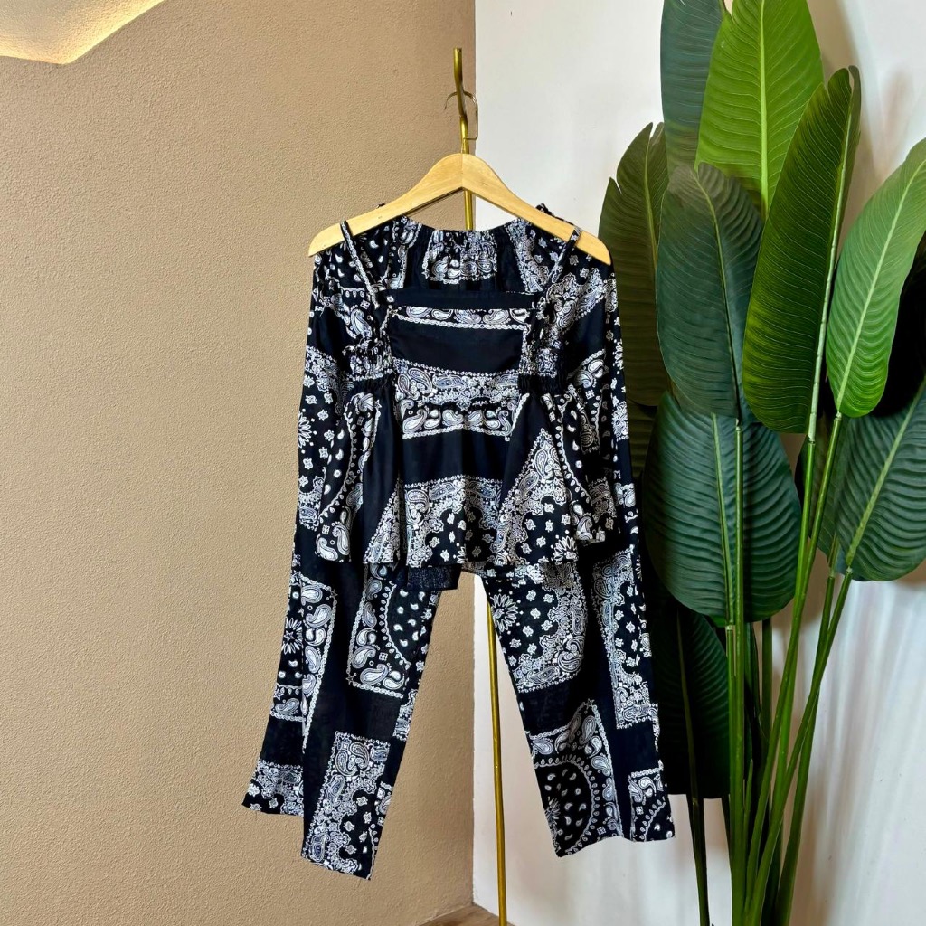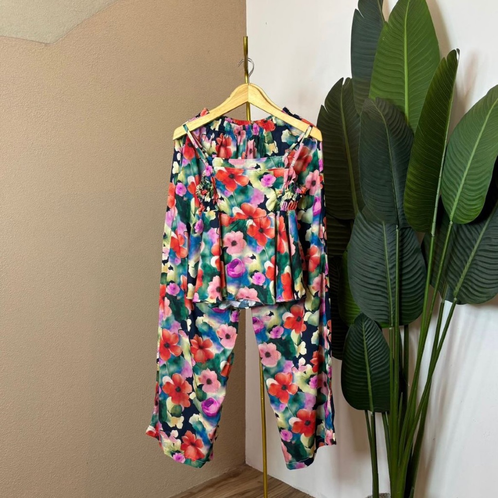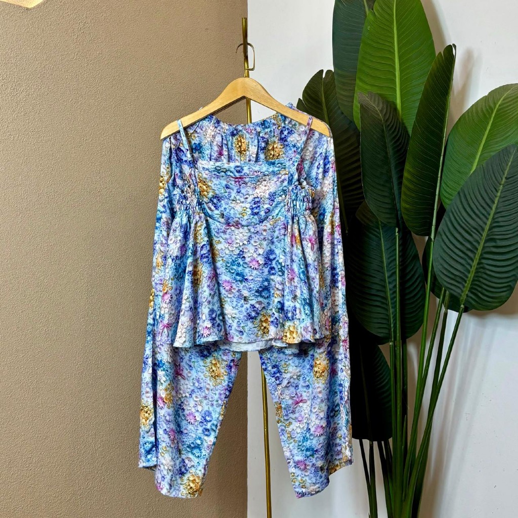 Azura One Set Rayon Premium Long Pants Set Women's Patterned Top