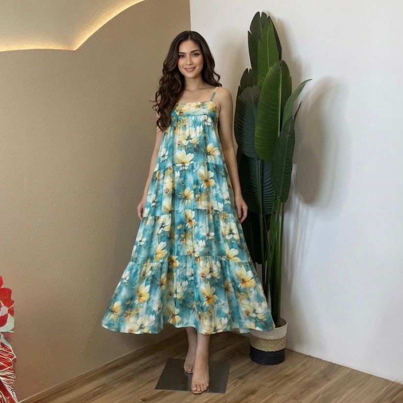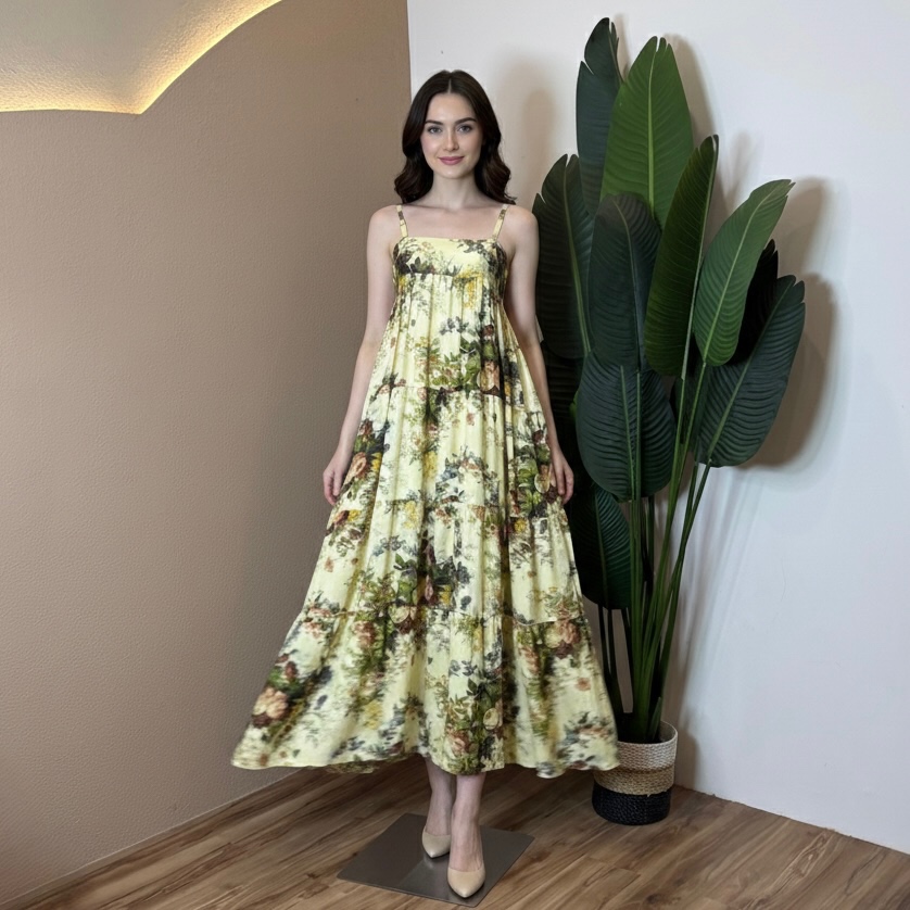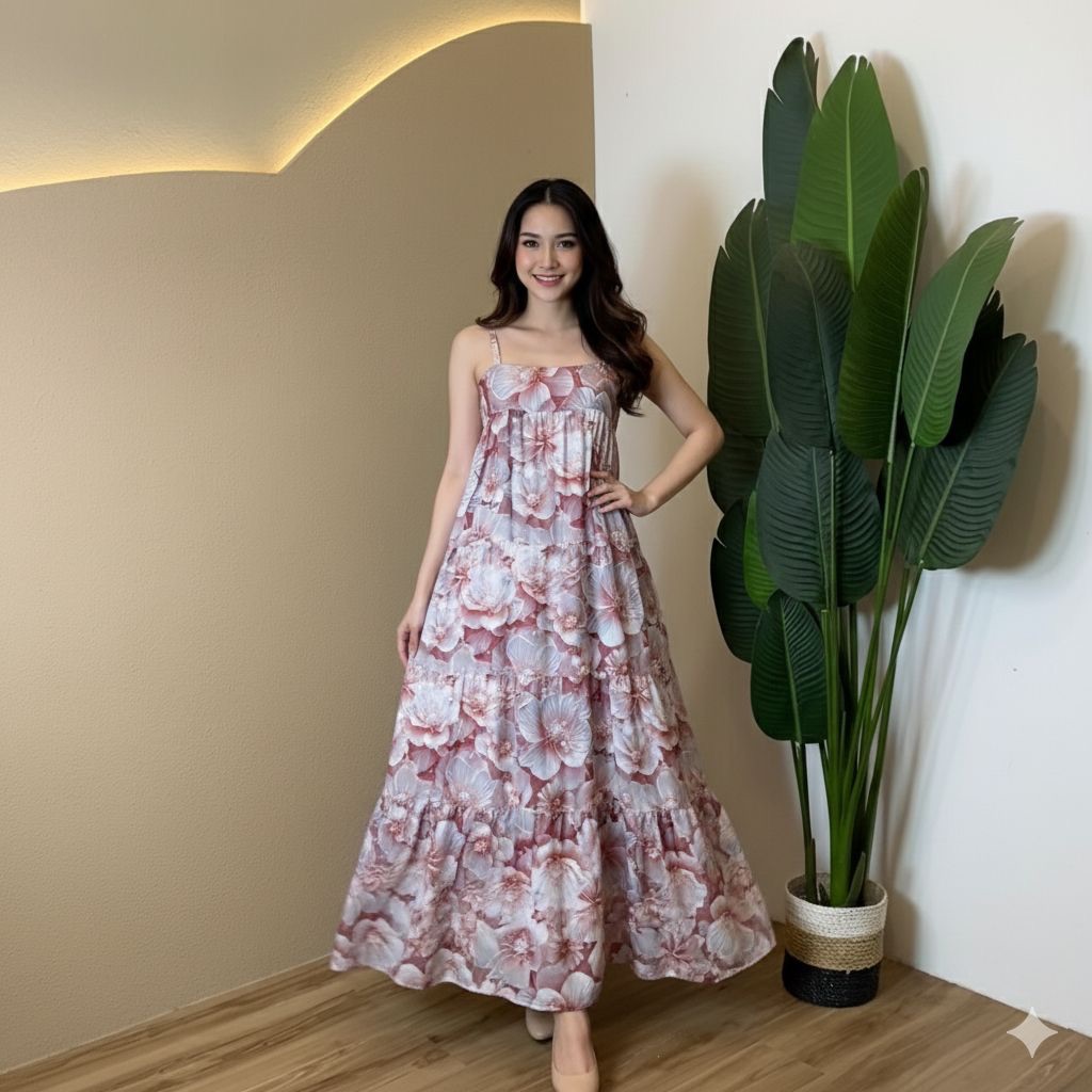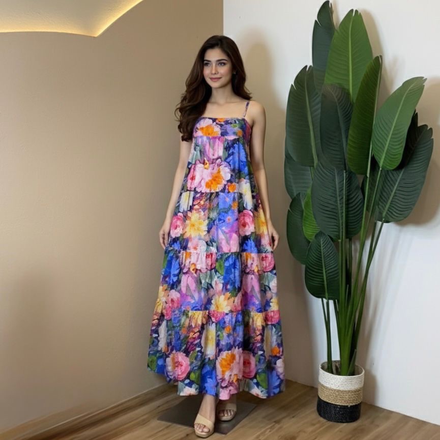 Erika Dress Rayon Premium Sleeveless Motif Dress Woman Long Dress Maxi Dress