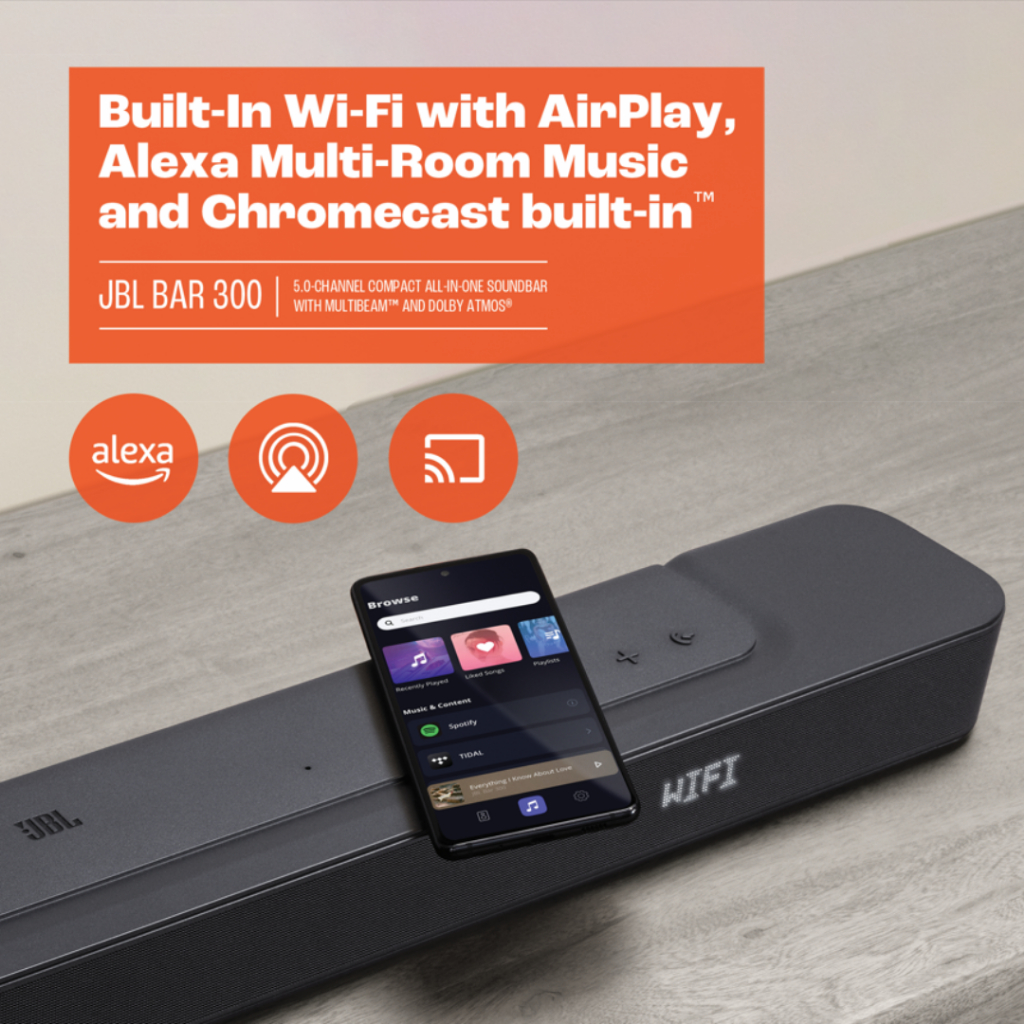 JBL BAR 300 5.0-Channel Compact All-In-One Soundbar With Multibeam™ And Dolby Atmos®