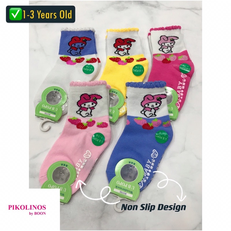 1-3 Years Old Melody Kids Girls Cartoon Socks with Non Slip Design • Stokin Budak Perempuan