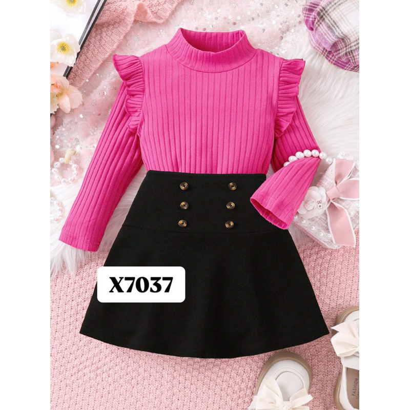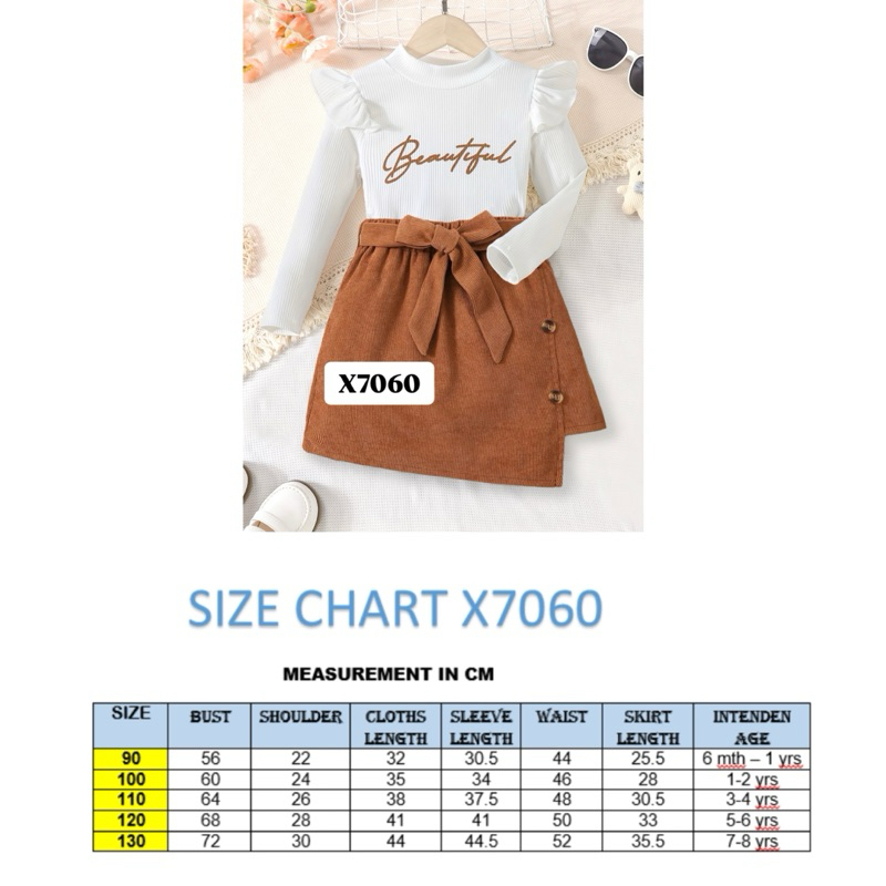 [6M - 12Y] Blouse, Skirt & Belt for Kids Baju Budak Perempuan Skirt Budak One Set Kids Korean Style Outfit
