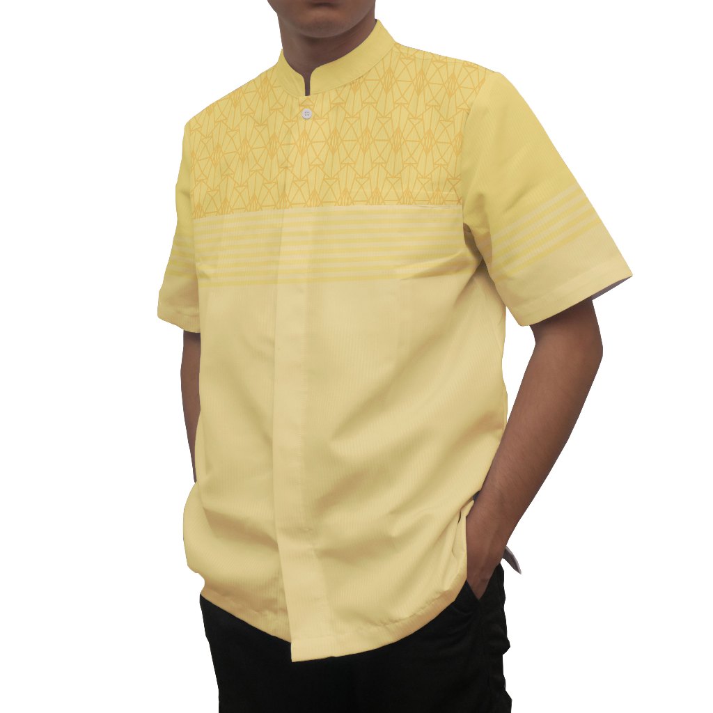 KEMEJA RAKAN SUBLIME-Shirt Men's Muslimkoko Pattern Linea Art 05 Yellow Short Sleeve & Long Sleeve Custom Full Printing Kurta Lelaki Kurta Lengan Panjang Kurta Lengan Pendek