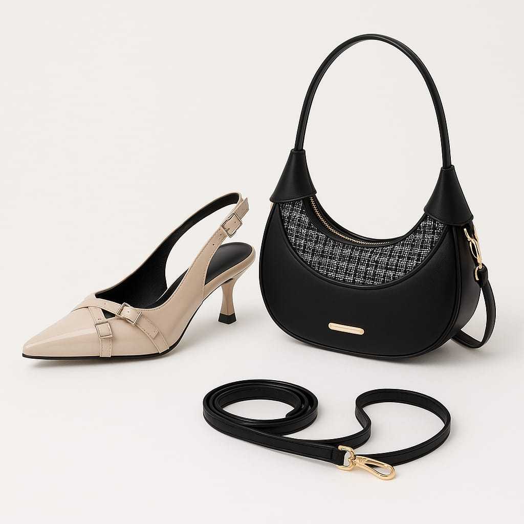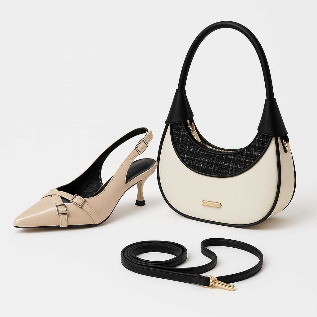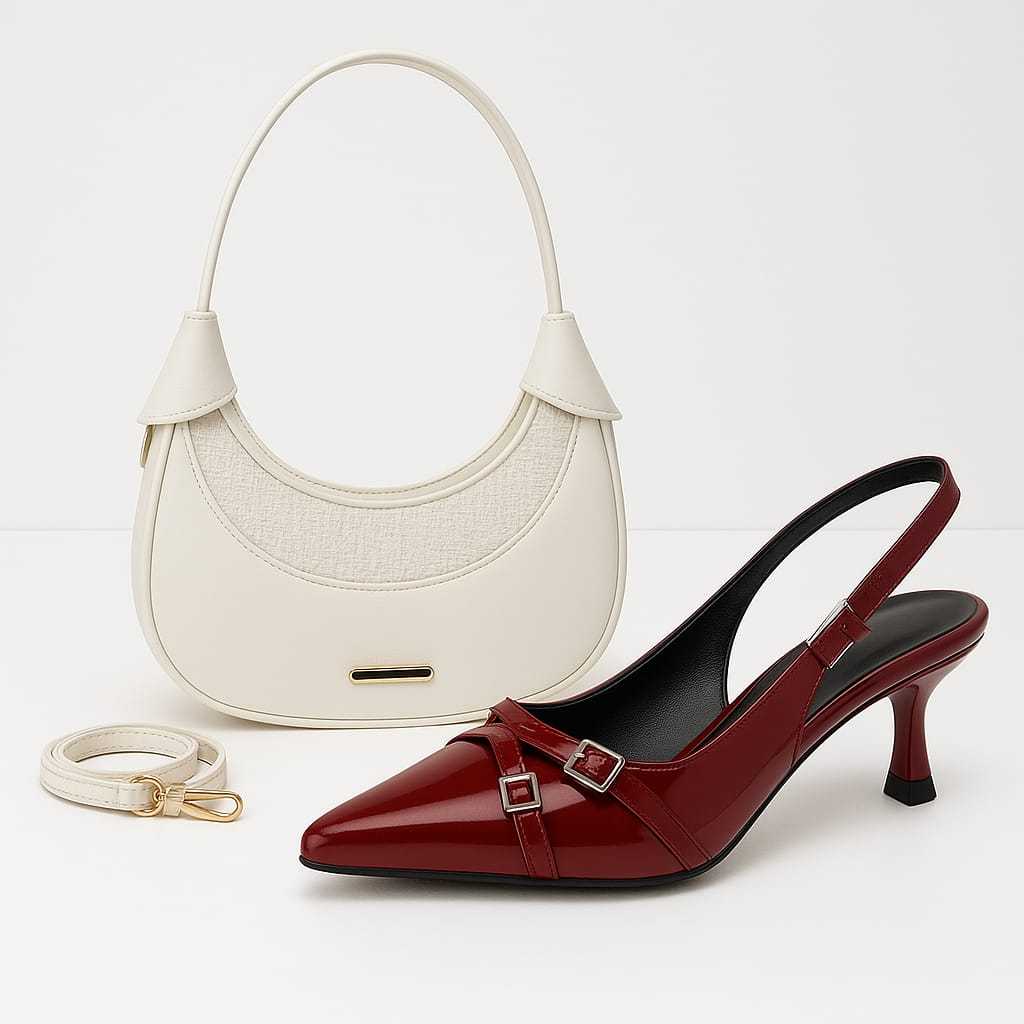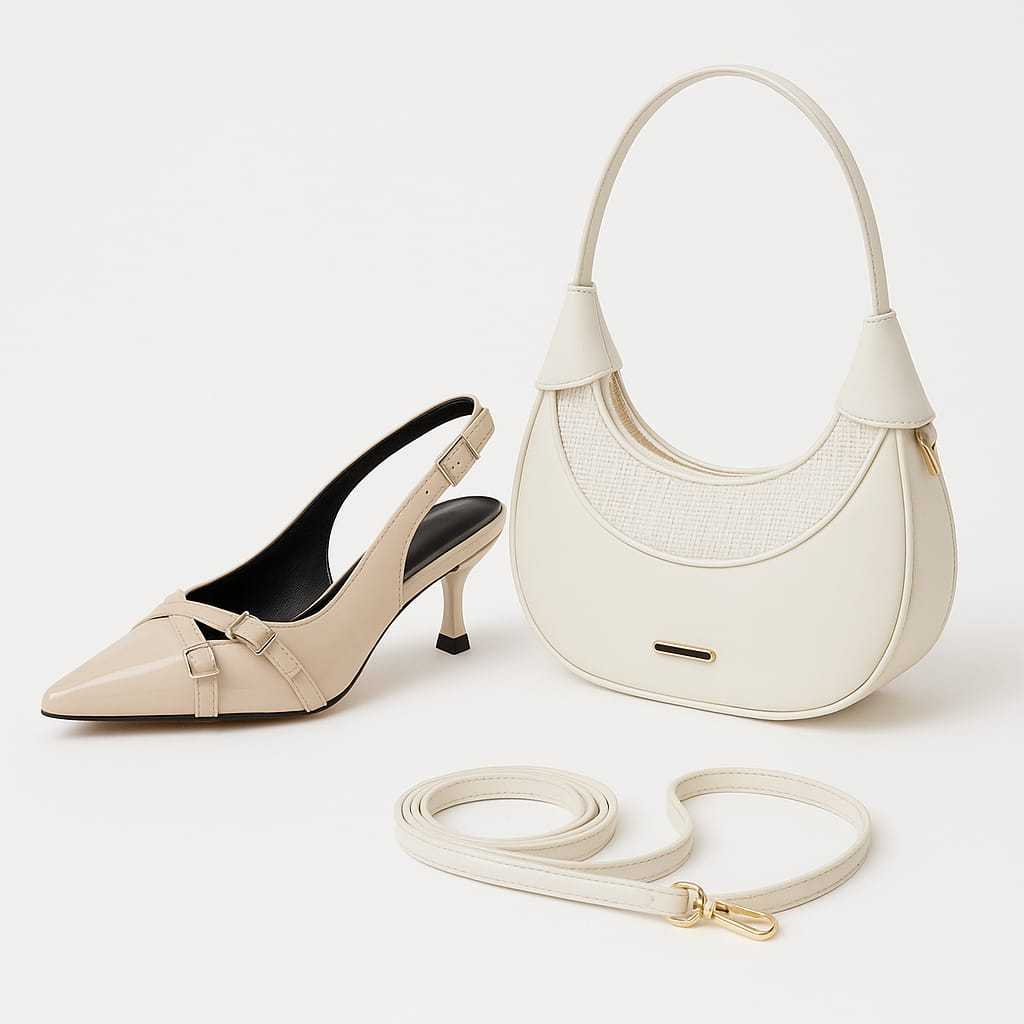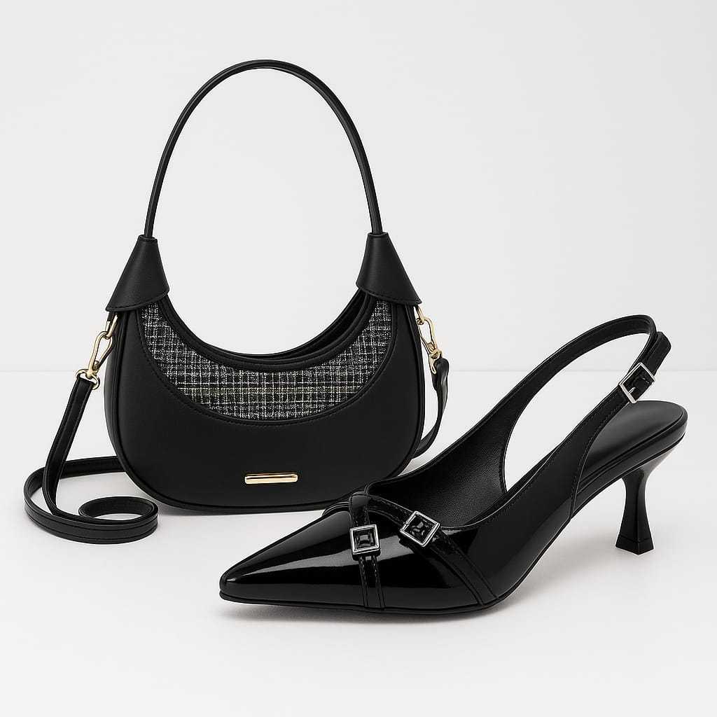 1 Set of Women's High Heels with Cross Buckle and elody Sling Bag
