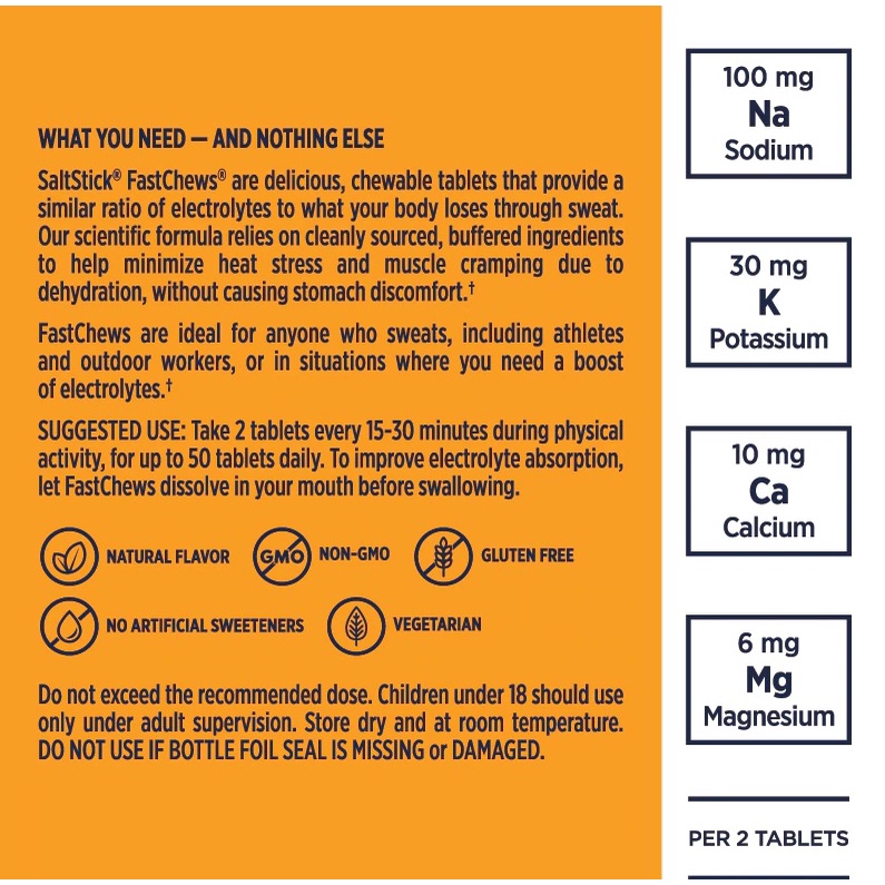 [NEW] Saltstick Fastchews Tart Orange 60pcs Muscle Cramps Electrolyte for Marathon/Triathlon/Ultra/Trekking/Vegetarian