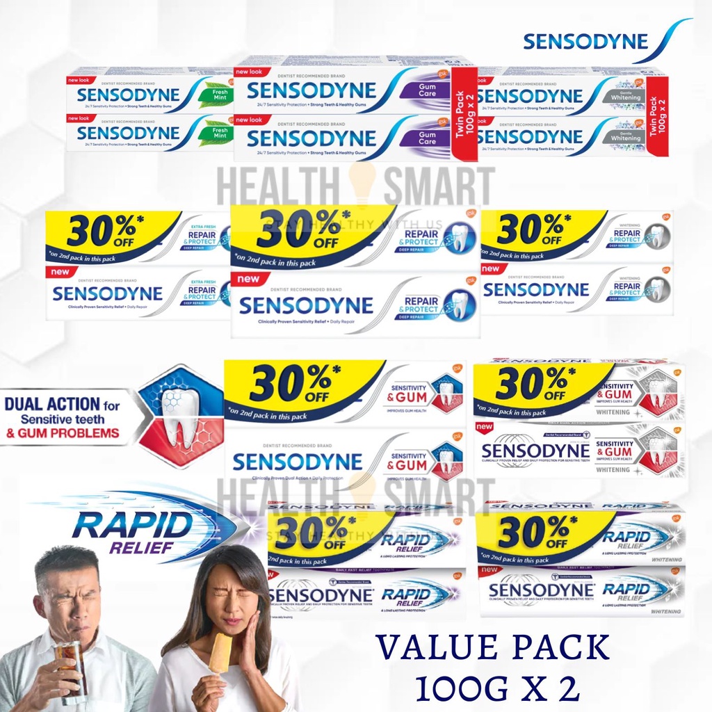 Sensodyne Toothpaste Repair Protect/ Rapid Relief/ Sensitivity Gum/ Gum Care/ Fresh Mint 100gx2