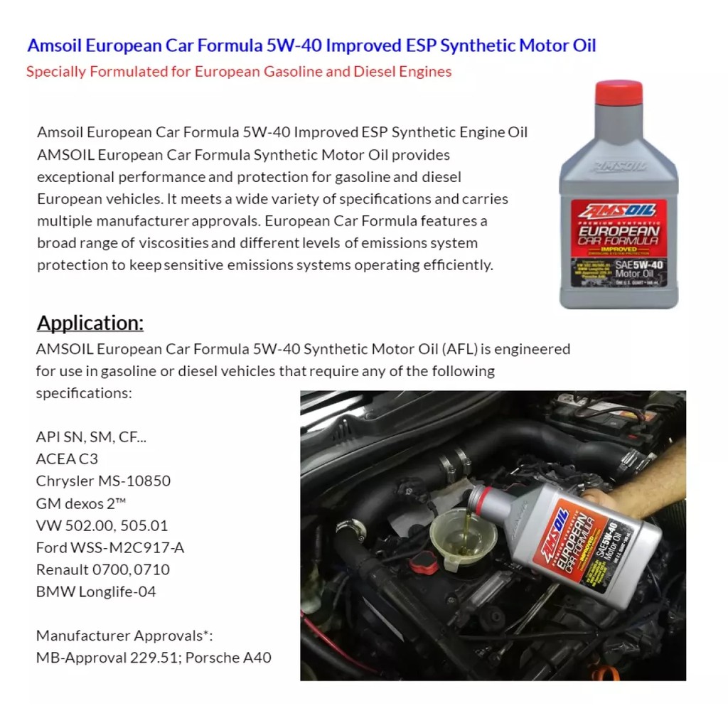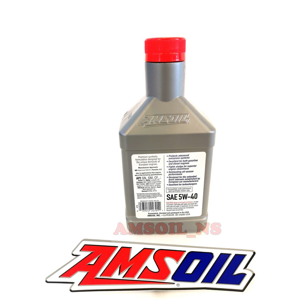 Amsoil 100% Synthetic European Car Formula 5W-40 / 5W40 Improved ESP Synthetic Engine Oil 1QT / 946ml