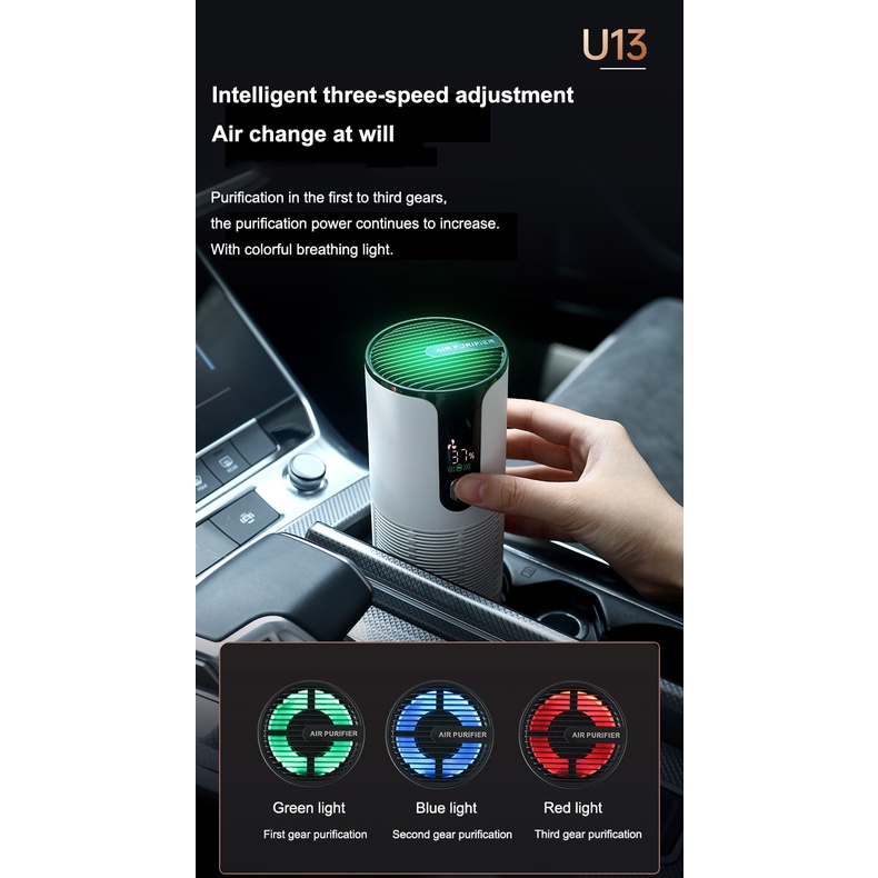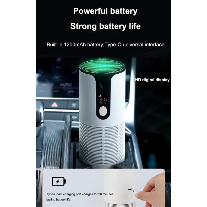 SwissThomas Portable Car Air Purifier 1200mAh USB Rechargeable Formaldehyde Smoke Smell Removal Mini Air Purifier