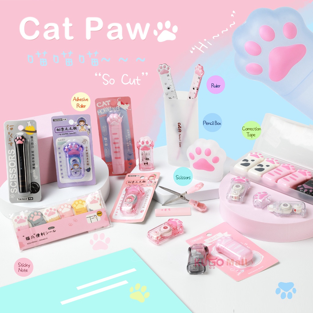 Cat Paws Series Cute Correction Tape Sticky Note Pencil Sharpener Pencil Case Dot Glue Tape Ruler Scissors stationery