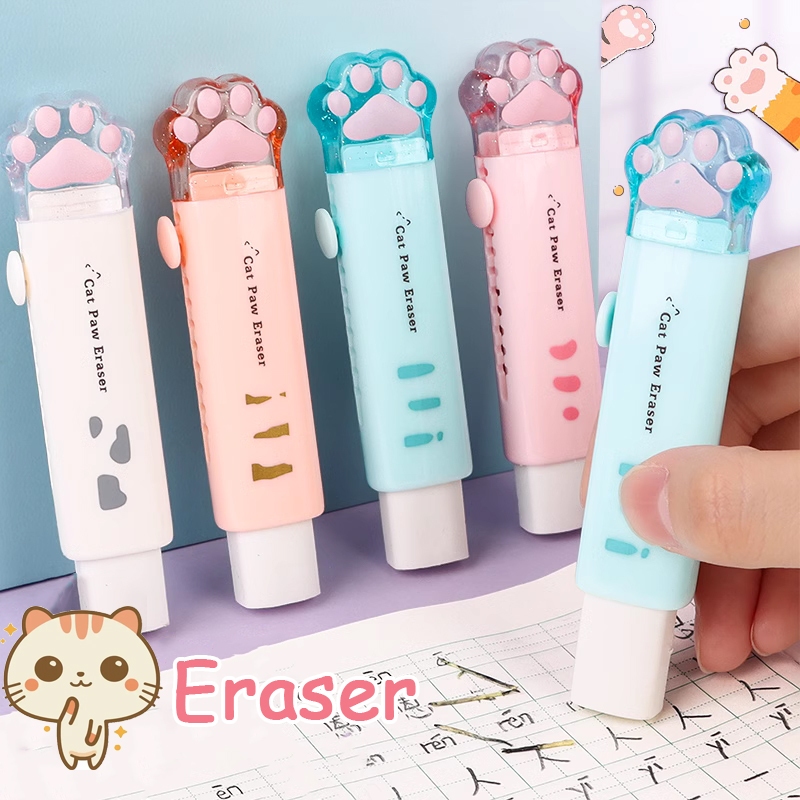 Kitten Claw Retractable Rubber Pencil Erasers Refillable Push Pull Eraser For Children Student Classrooms Homework