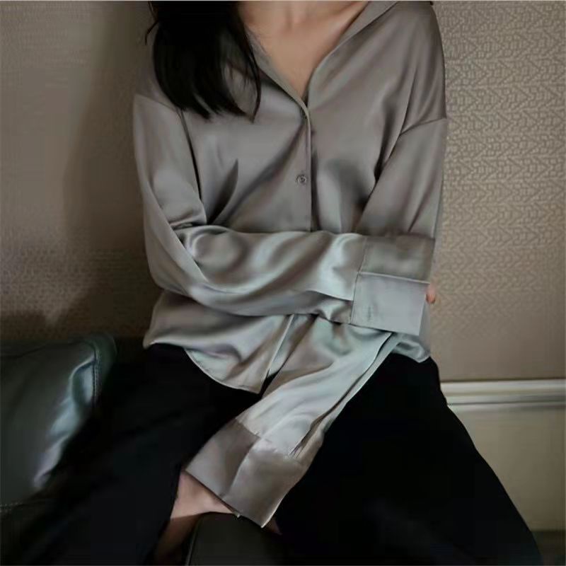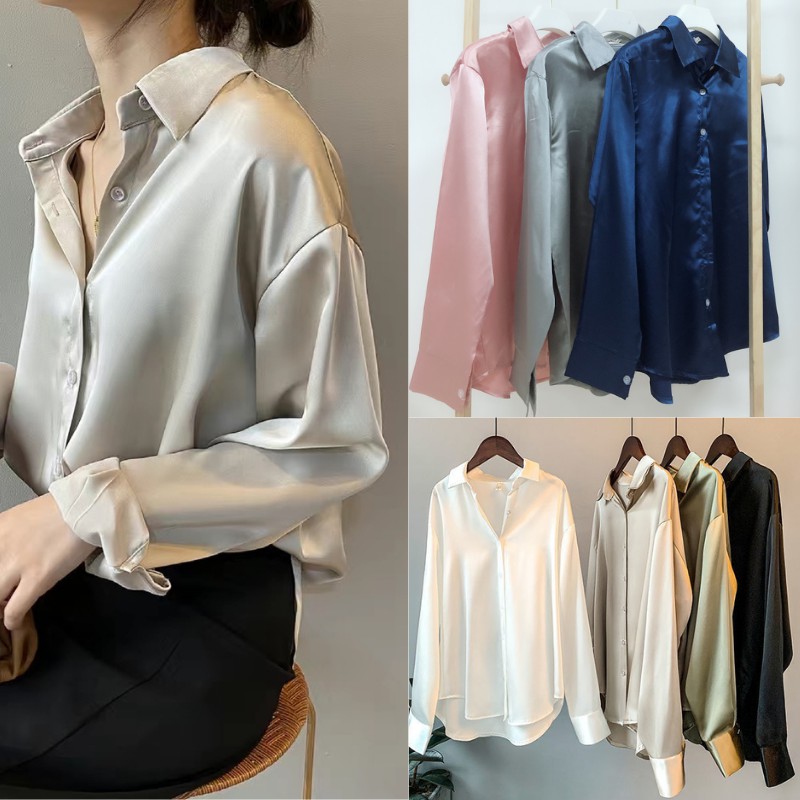 ⭐Ready stock⭐Satin blouse Long Sleeve shirt Women blouse New Loose Retro Shirt Top