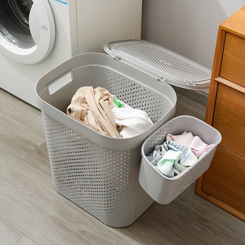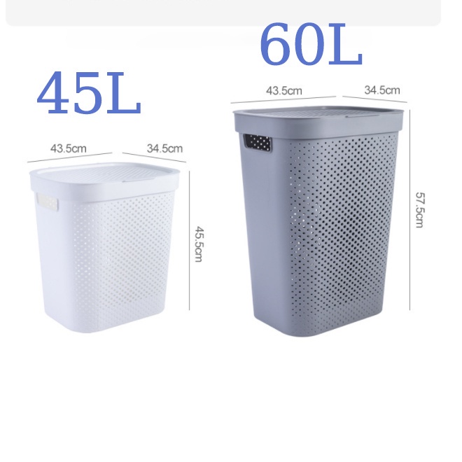Bakul Dobi Putih/Kelabu Gaya Jepun 45 Liter / 60 Liter dengan Penutup – Untuk Pakaian Kotor Laundry Basket