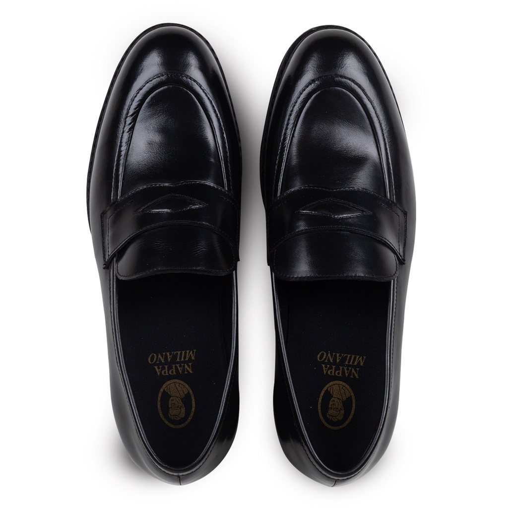 Noir Penny Loafers - Nappa Milano - Men's Leather Shoes Loafer Men Loafer Shoes Men