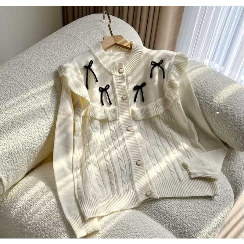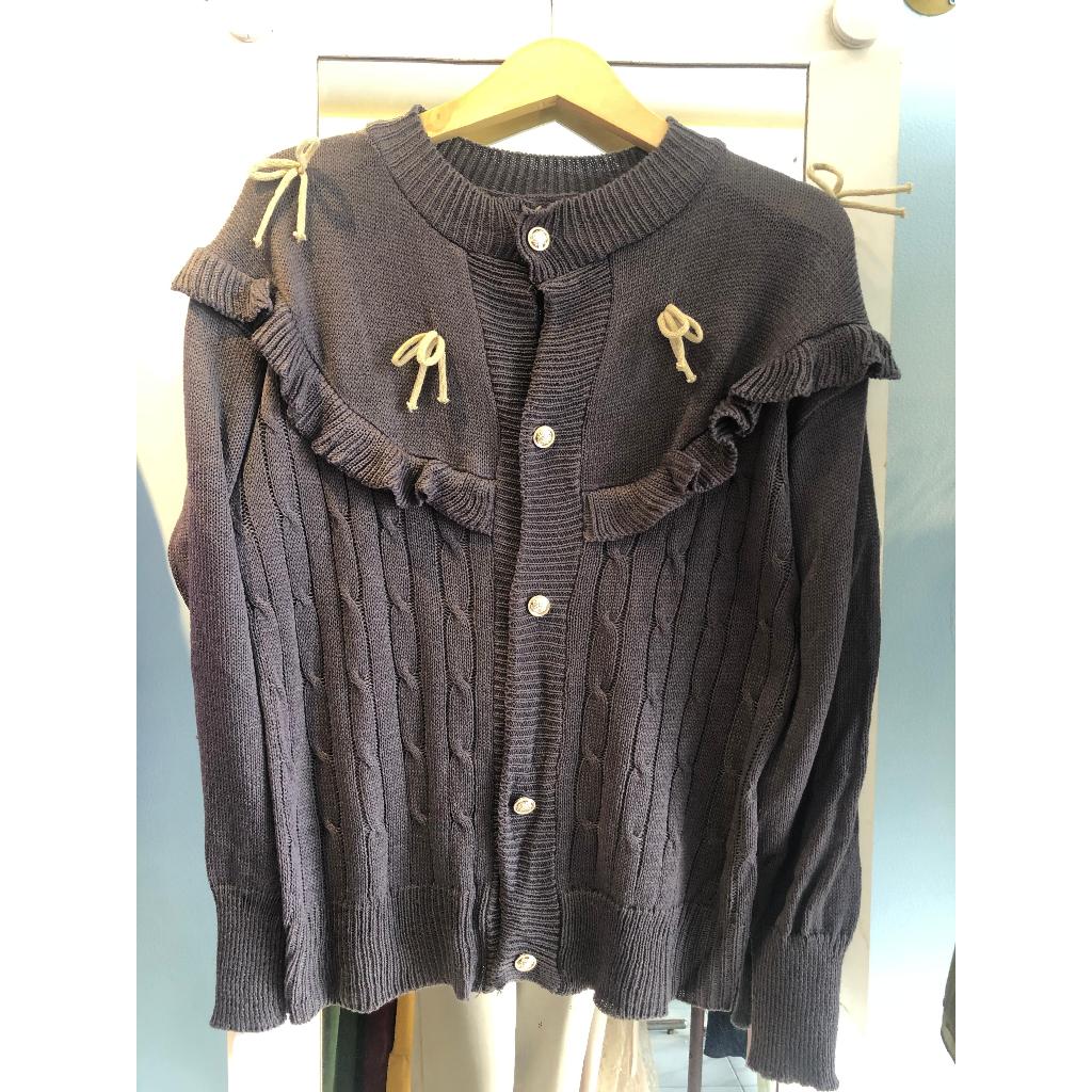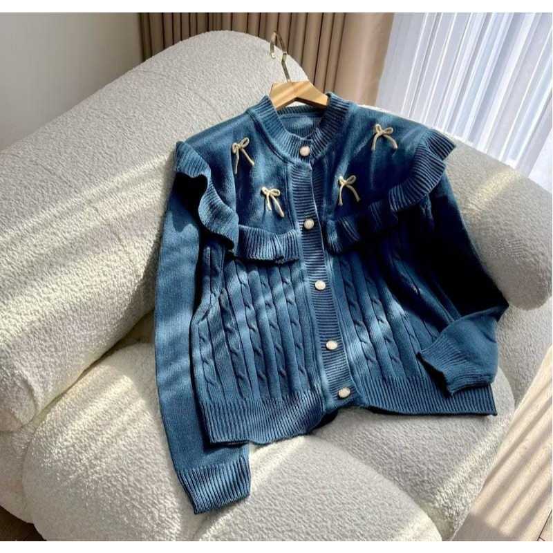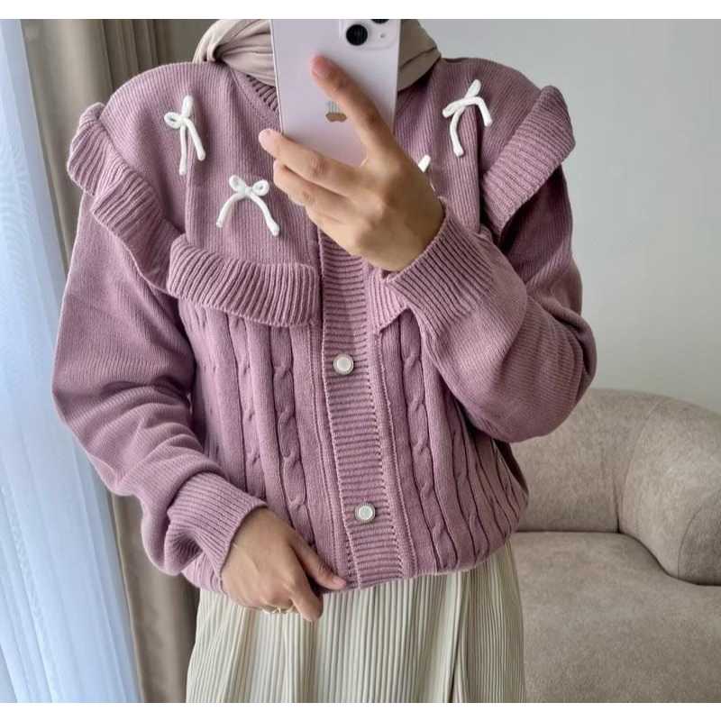 Premium Knit Cardigan Darika Cardy/ with Ruffle and Ribbon Motif, Comfortable to Wear