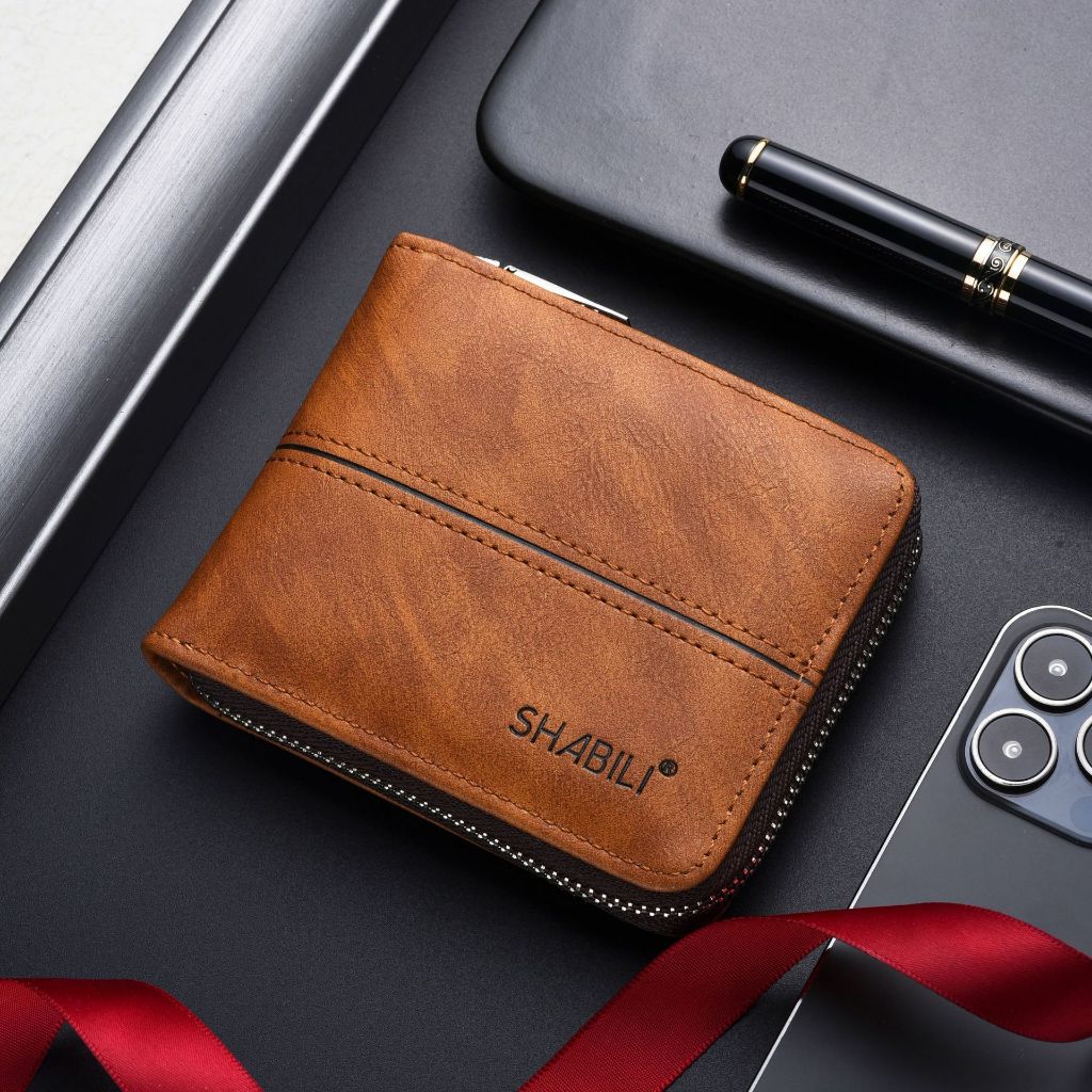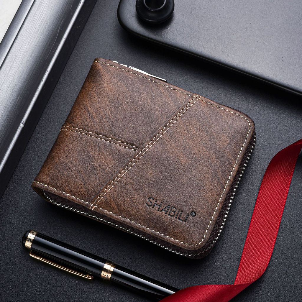 Men's Zipper Wallet – European American Style with Trendy Splicing Fashion Design男士钱包