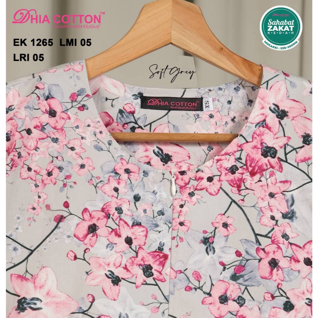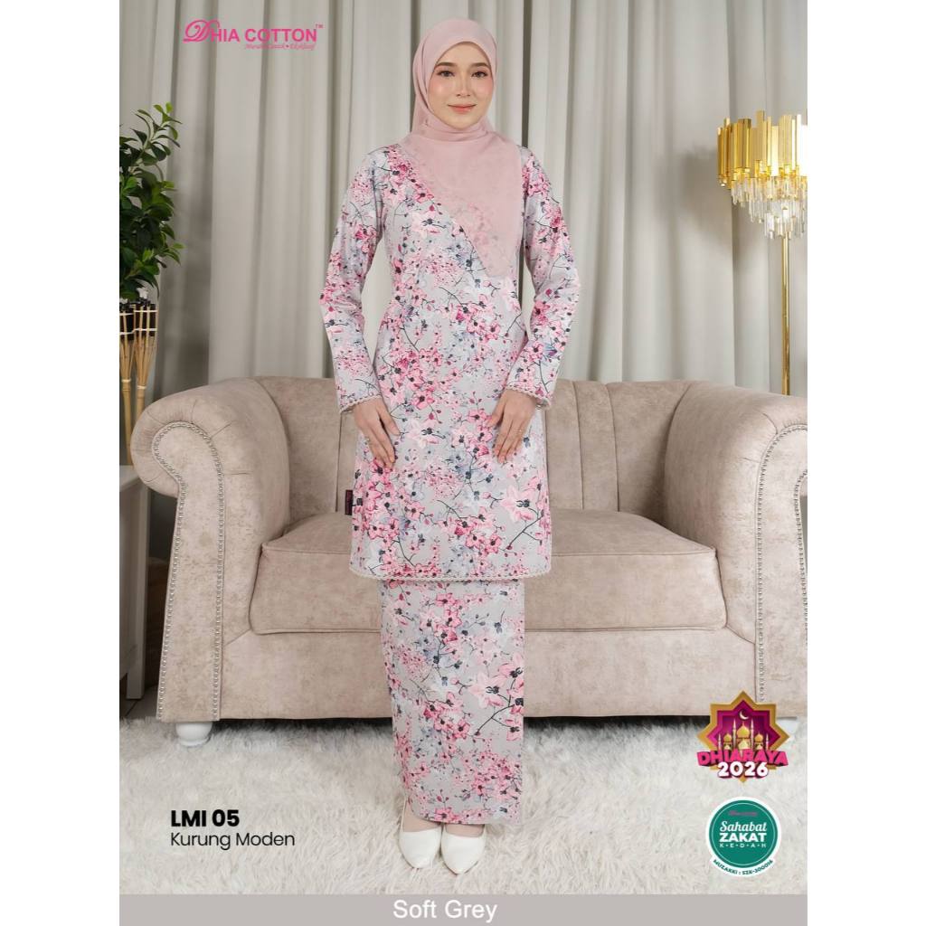Raya 2026 Dhia Cotton Set 1265 Soft Grey Baju Kurung Moden Riau Sulam Aminah Kemeja Sedondon