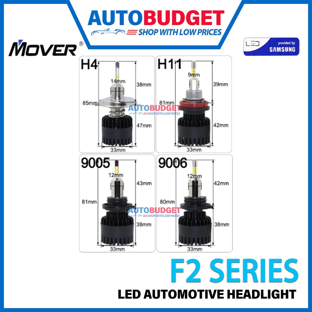 Mover F2 LED Car Headlight 6500K | Mover SAMSUNG F2 Series LED H4 H7 H11 9005 9006 Car LED 360 4 Side LED Headlamp