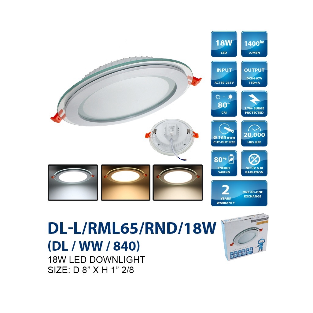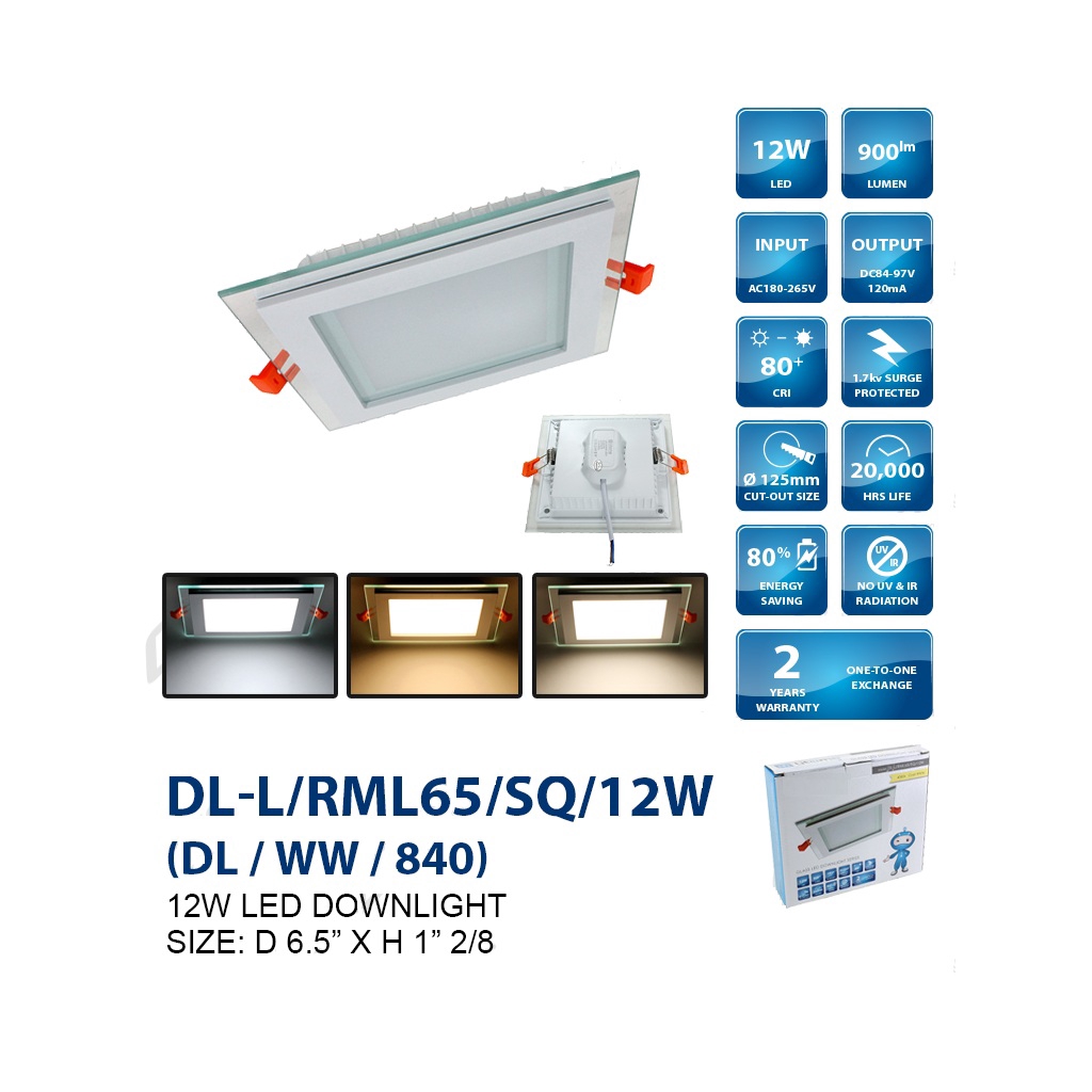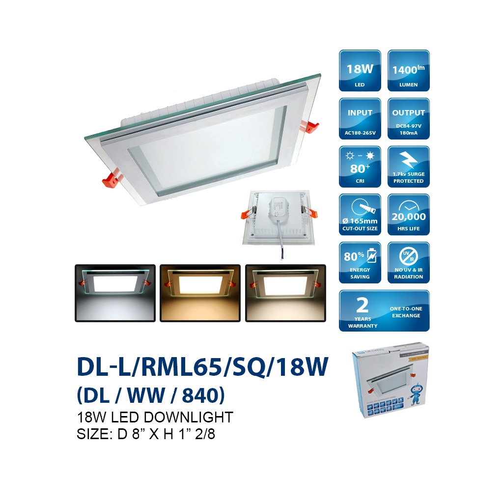 12W/18W Glass LED Round/Square Downlight