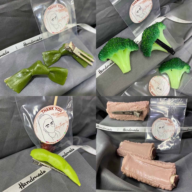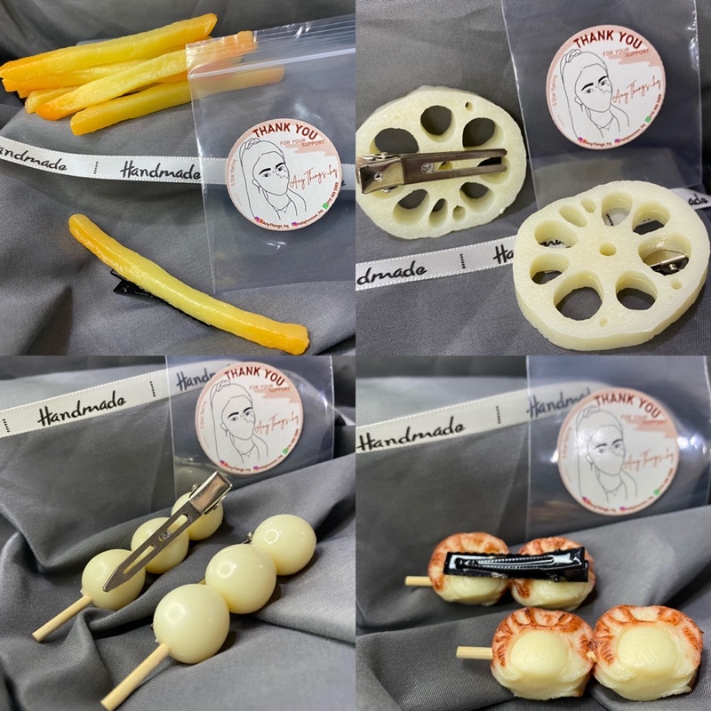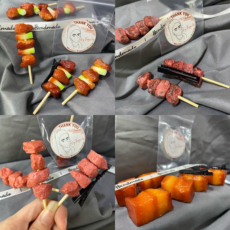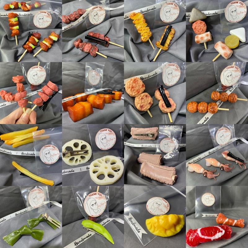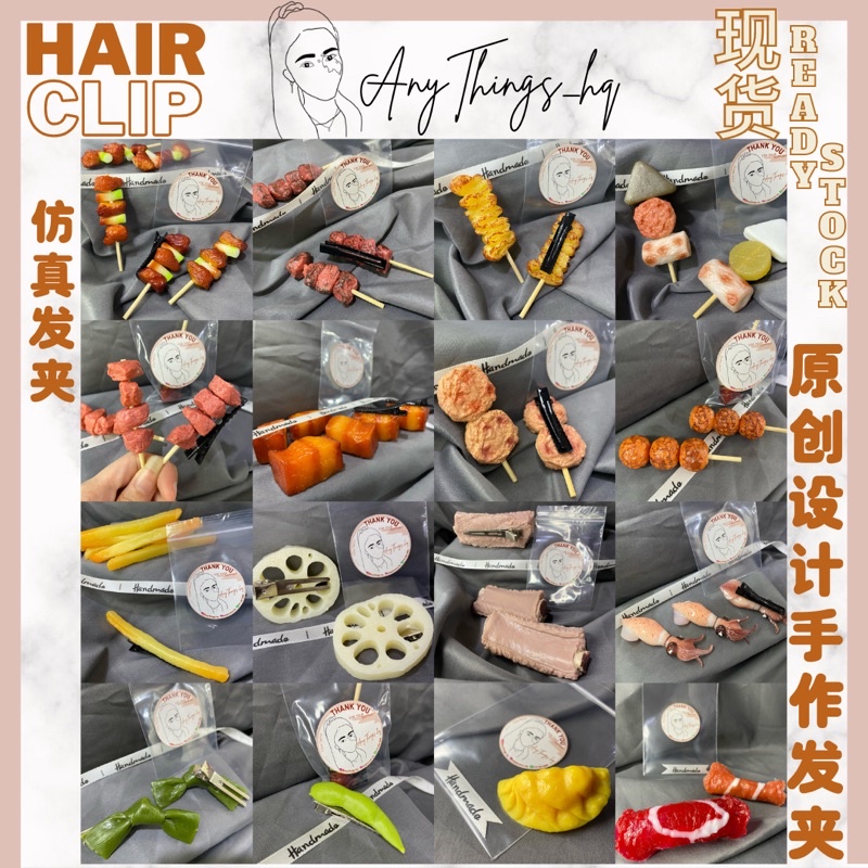 现货Ready Stock 原创手工爆红发夹🔥清炖排骨发夹 红烧肉/莲藕/薯条/牛肉串/香葱串/生肉串/章鱼/毛豆/饺子/关东煮/海带/炸丸子串/烤肉饼串发夹 原创手工制作设计仿真真实食物女孩恶搞礼物清蒸发夹食玩趣味搞怪发饰