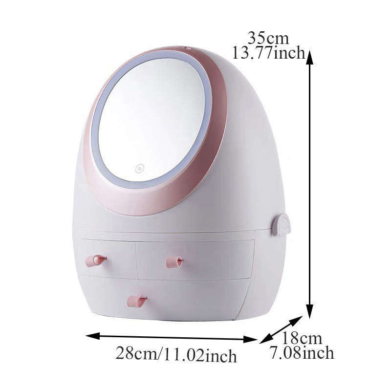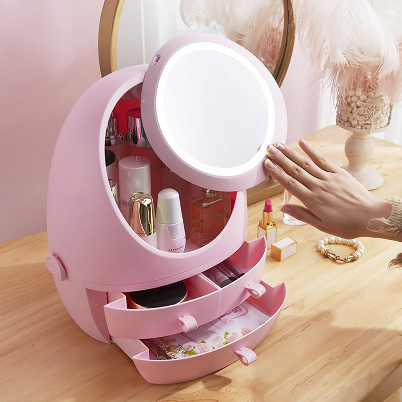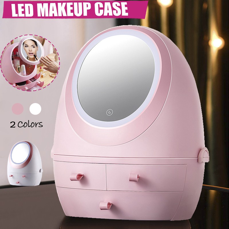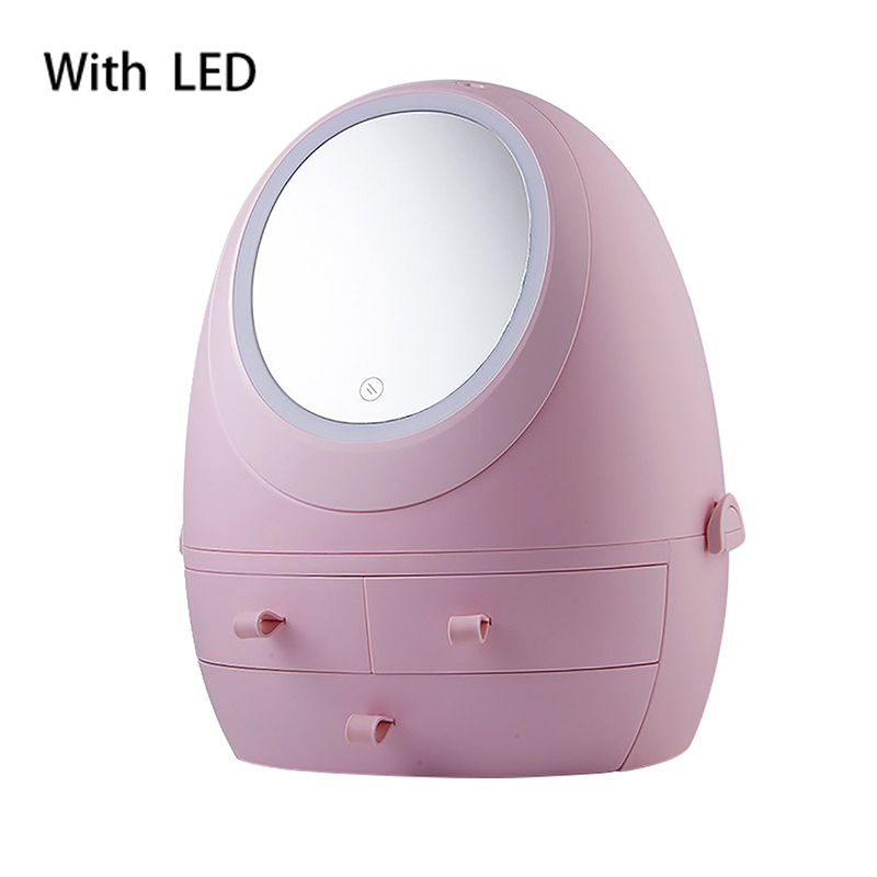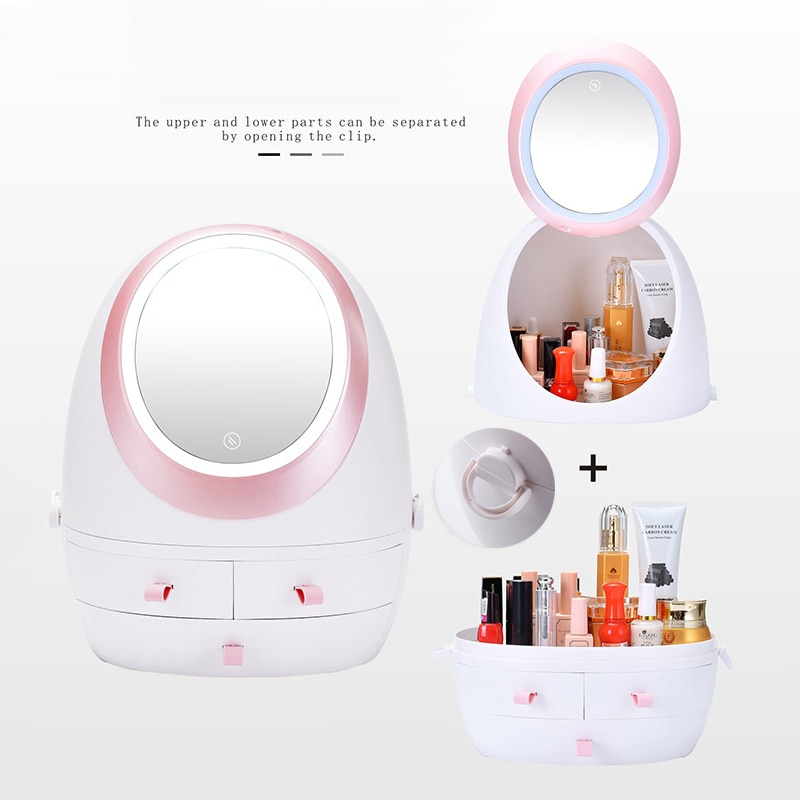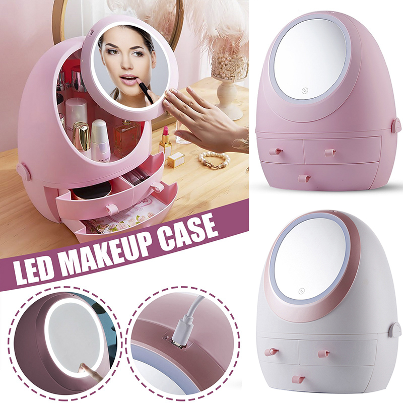 Cosmetic Storage Box with Rechargeable LED Light Makeup Mirror Storage Box Jewellery Portable Drawer Skin Care Products Organizer