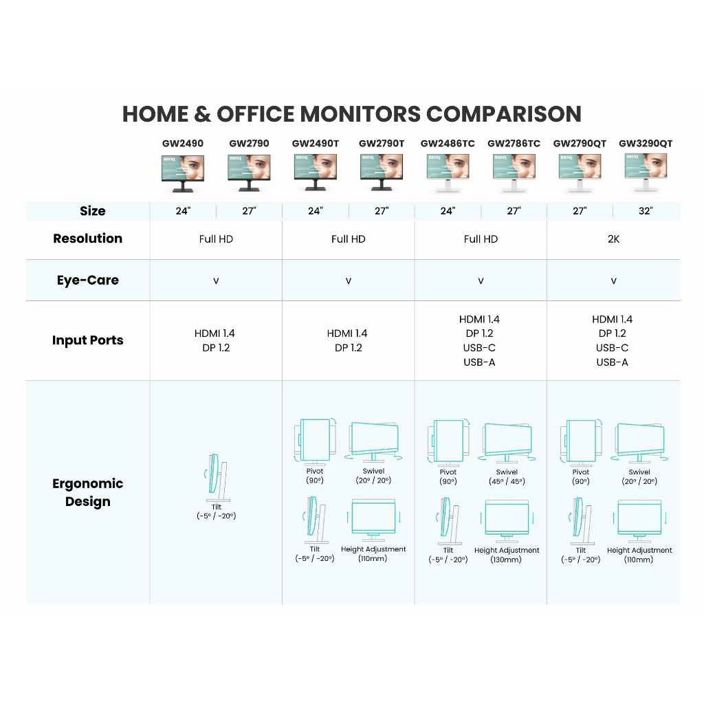 BenQ GW2790QT Home and Office Monitor (27"/IPS/75Hz/HDMI v1.4/Height Adjustment/Eye-Care)