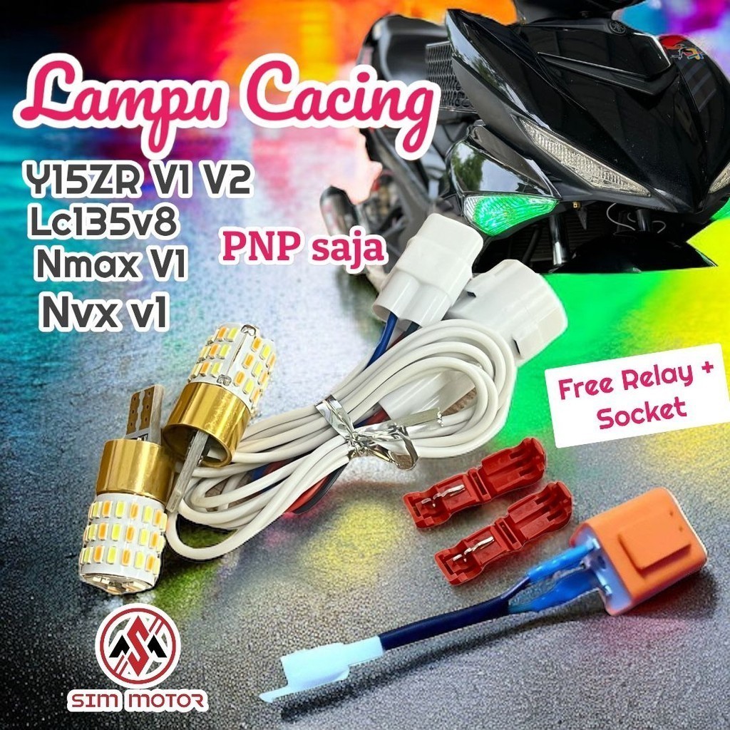 [Dapat Relay+socket] PNP Y15ZR nvx nmax lcv8 lc135v8 Lampu CaCing PNP terus Pasang With Socket Signal Winker Led Bulb