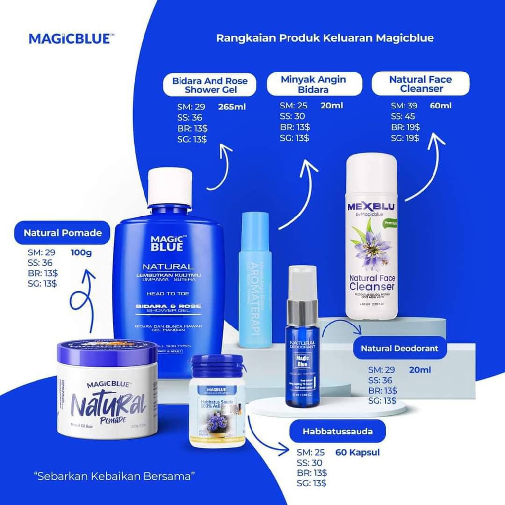 Magic Blue Mexblu Original | Deodorant /Habbatus Sauda/ Pomade/ Shower Gel/ Aromatherapy Oil & Face Cleanser