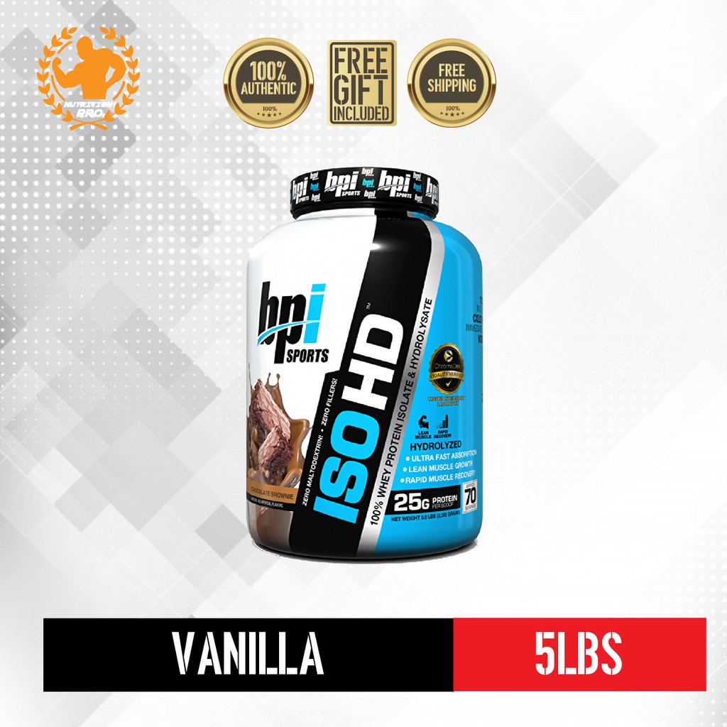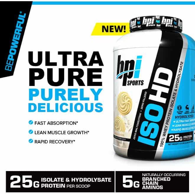 BPI ISO HD 5lbs 100% Whey Protein Isolate 25g of WPI per serving Zero Maltodextrin, Filter Protein, Build Muscle