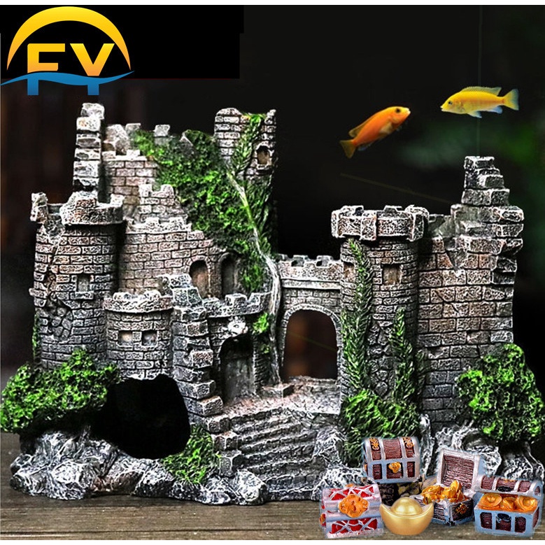 FY Fish Tank Aquarium Decoration Ancient Castle Aquascaping Plantscaping Terrarium Hiasan Akuarium Istana