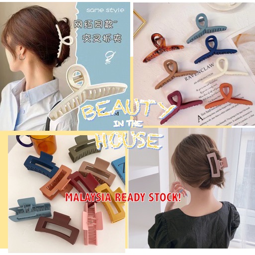 [CLEARANCE SALE] Vintage Autumn Matte Colourful Shark Clip Hair Claw Korean Women Klip Rambut 鯊魚发夹抓 Hair Accessories